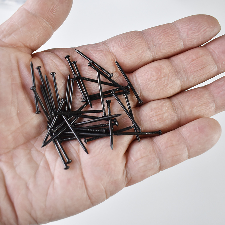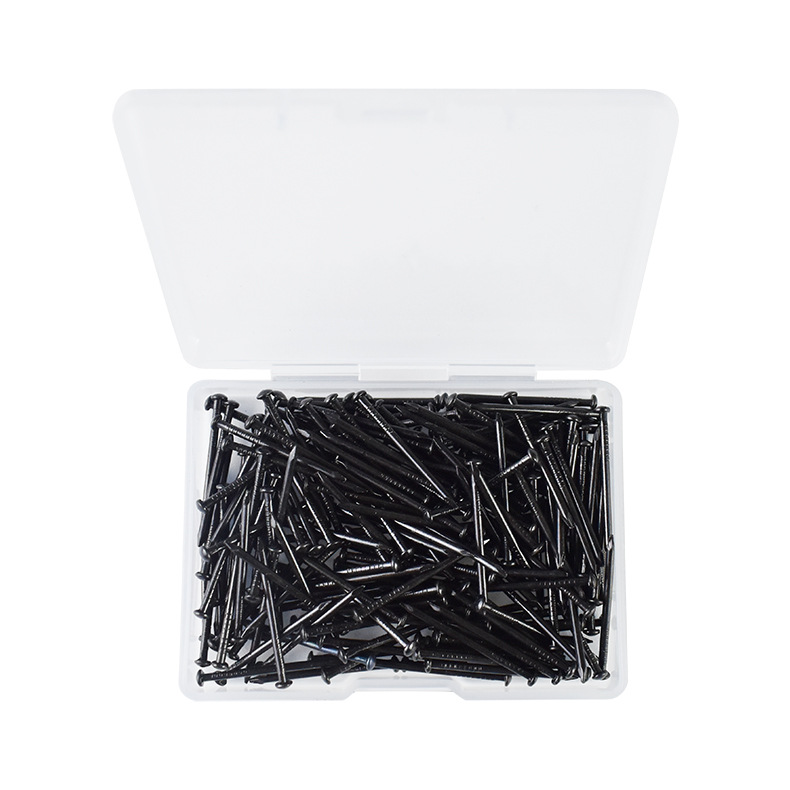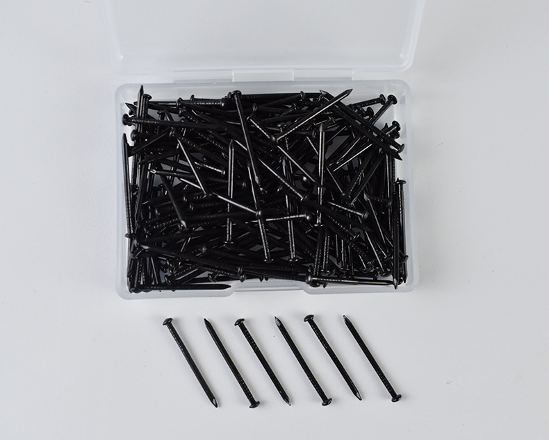 供跨境黑色25MM铁钉200根盒装 镀锌细钉子 黑色圆头钉圆帽木工钉