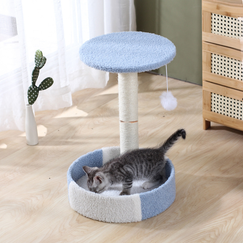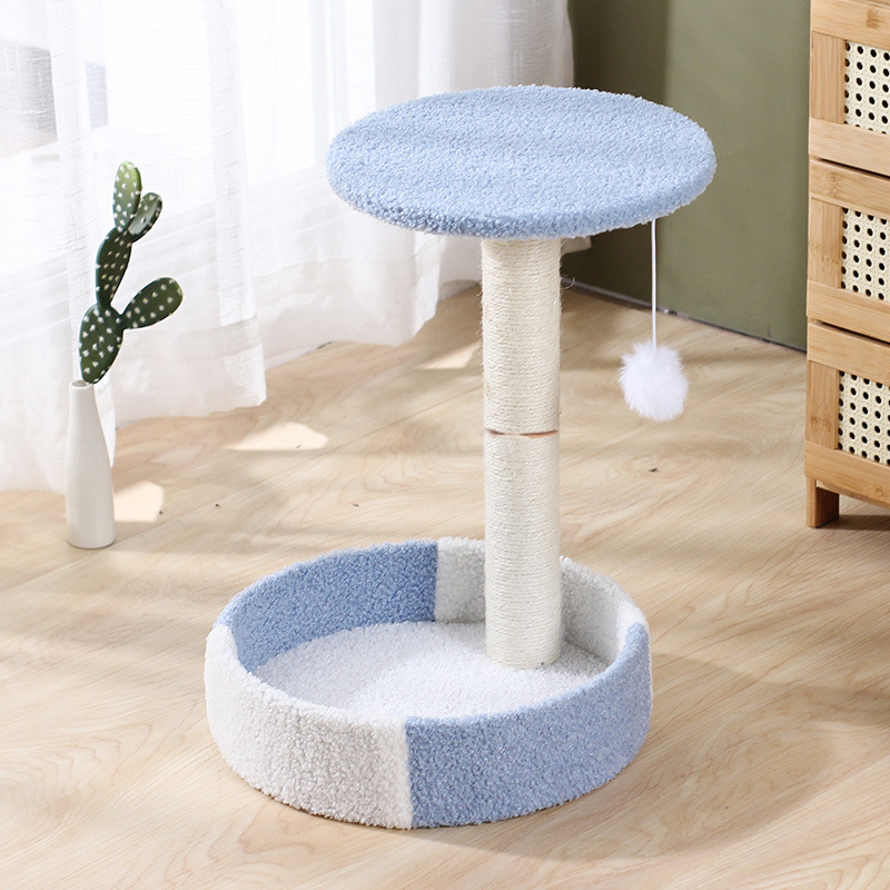 厂家直供拼色猫爬架柔软圆型猫窝剑麻绳猫爬柱蓝白米白双色猫跳台 投诉