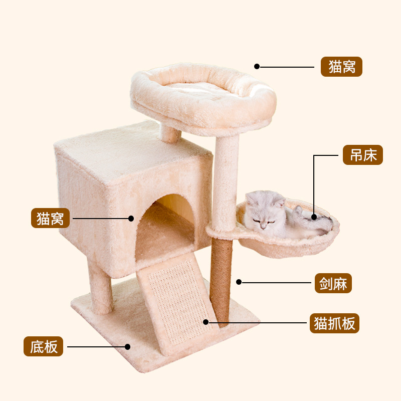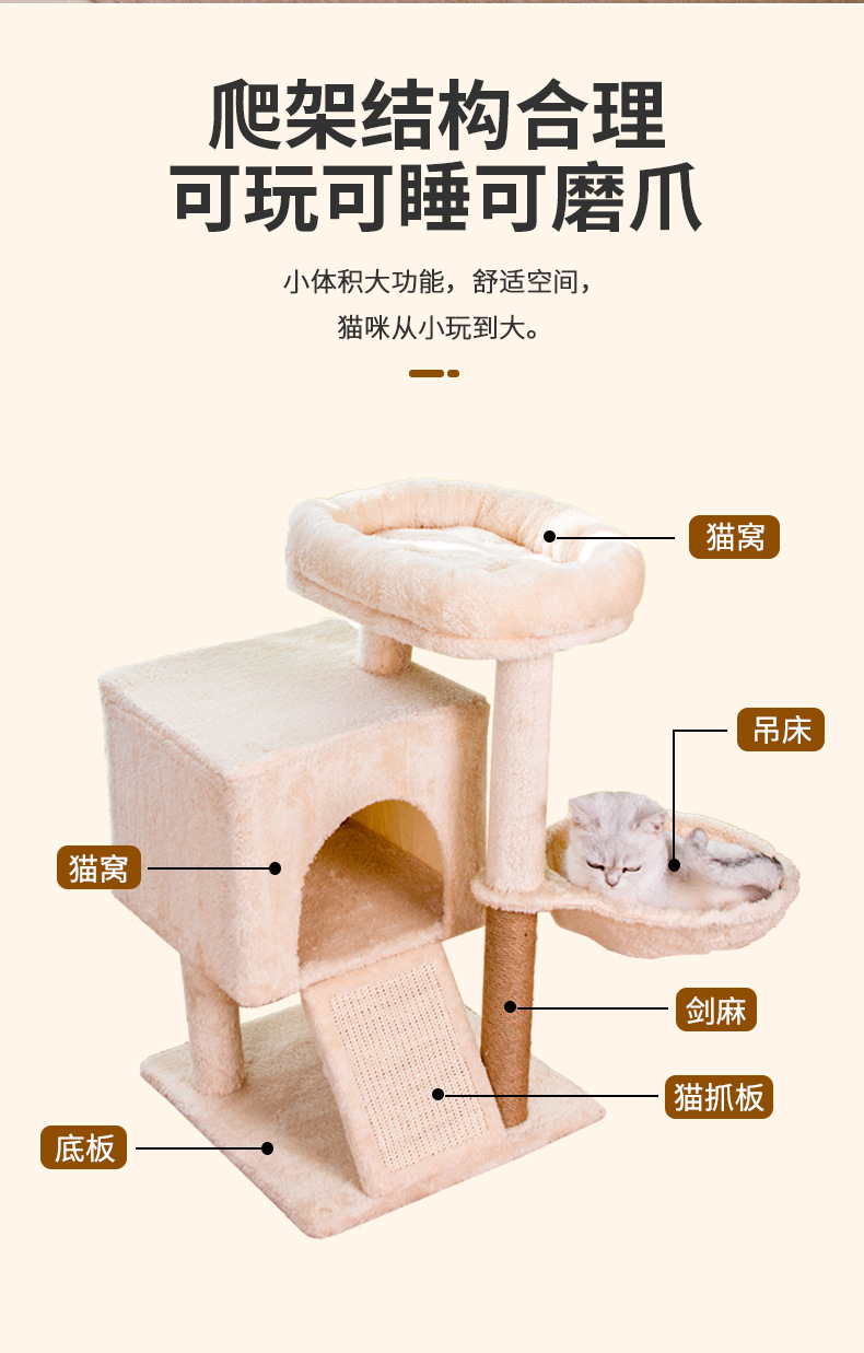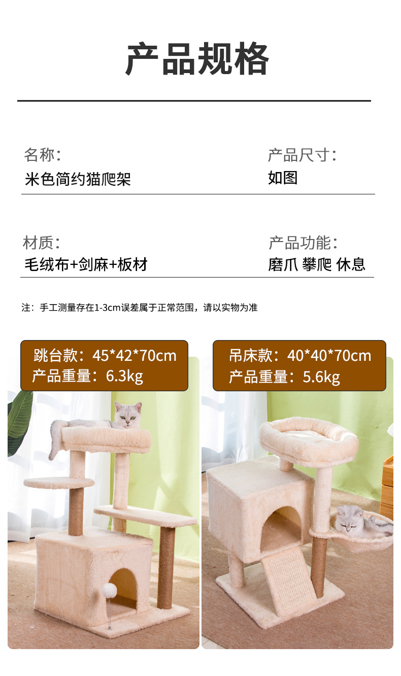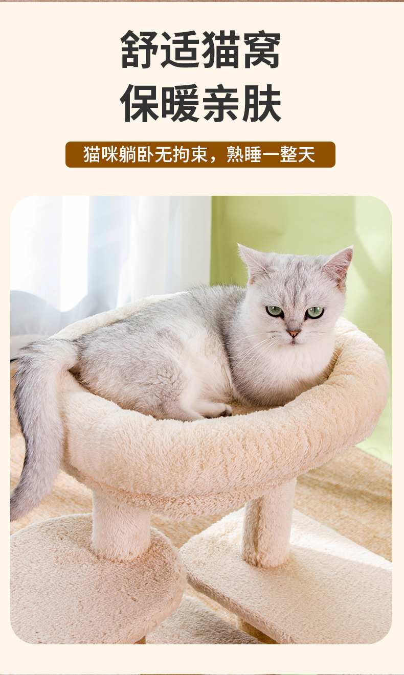 米色猫爬架猫窝猫树一体跳台猫咪玩具猫窝猫抓柱多猫家庭用品 投诉