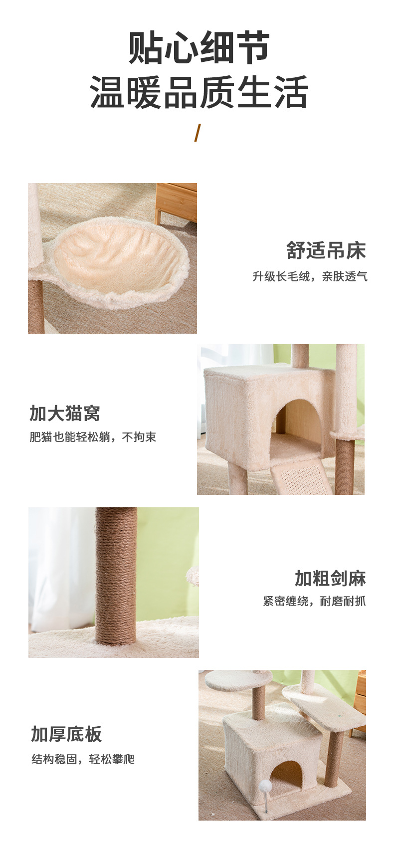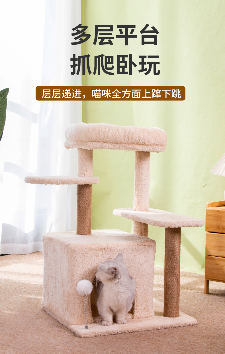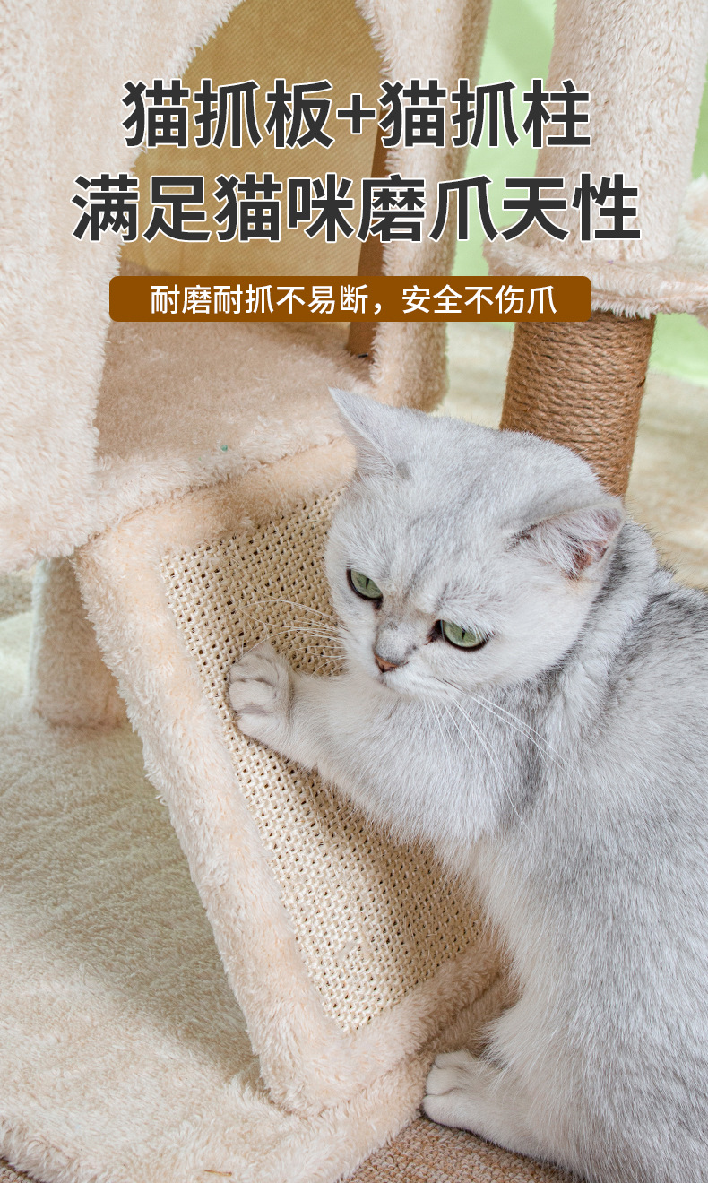 米色猫爬架猫窝猫树一体跳台猫咪玩具猫窝猫抓柱多猫家庭用品 投诉