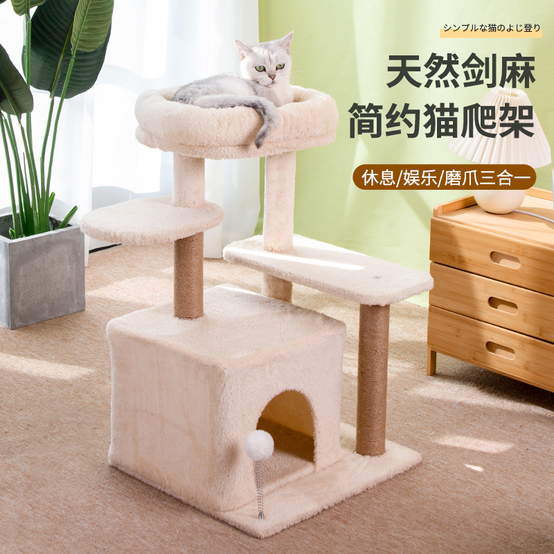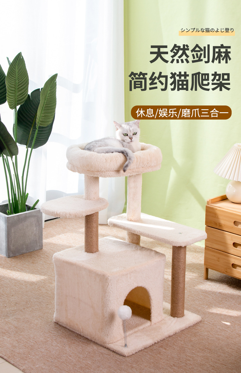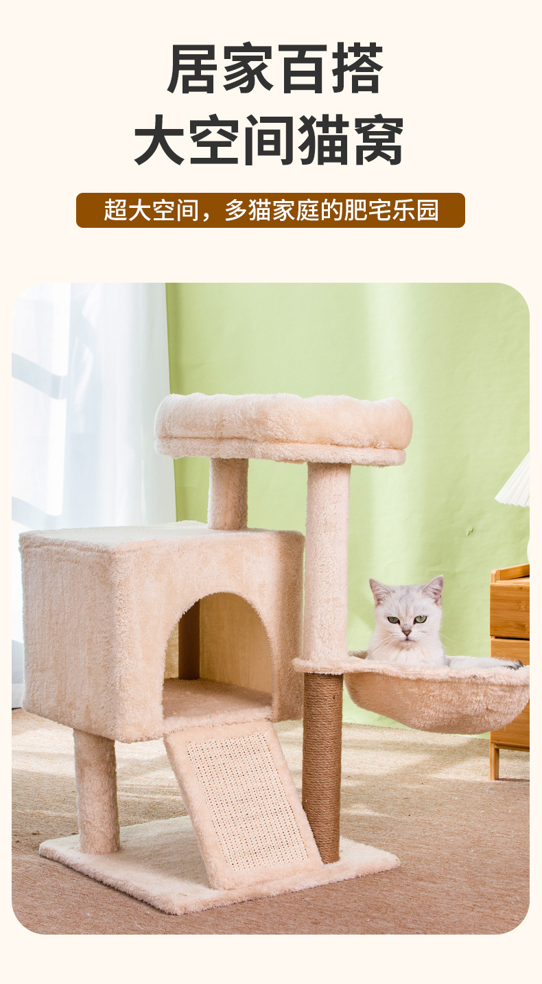 米色猫爬架猫窝猫树一体跳台猫咪玩具猫窝猫抓柱多猫家庭用品