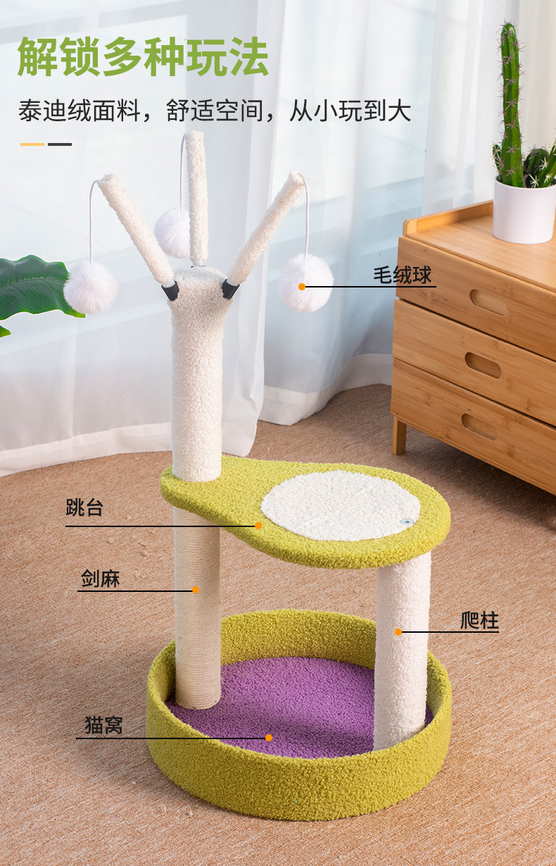 牛油果逗猫猫爬架多层跳台猫窝猫树一体猫抓柱幼猫玩具宠物用品 投诉