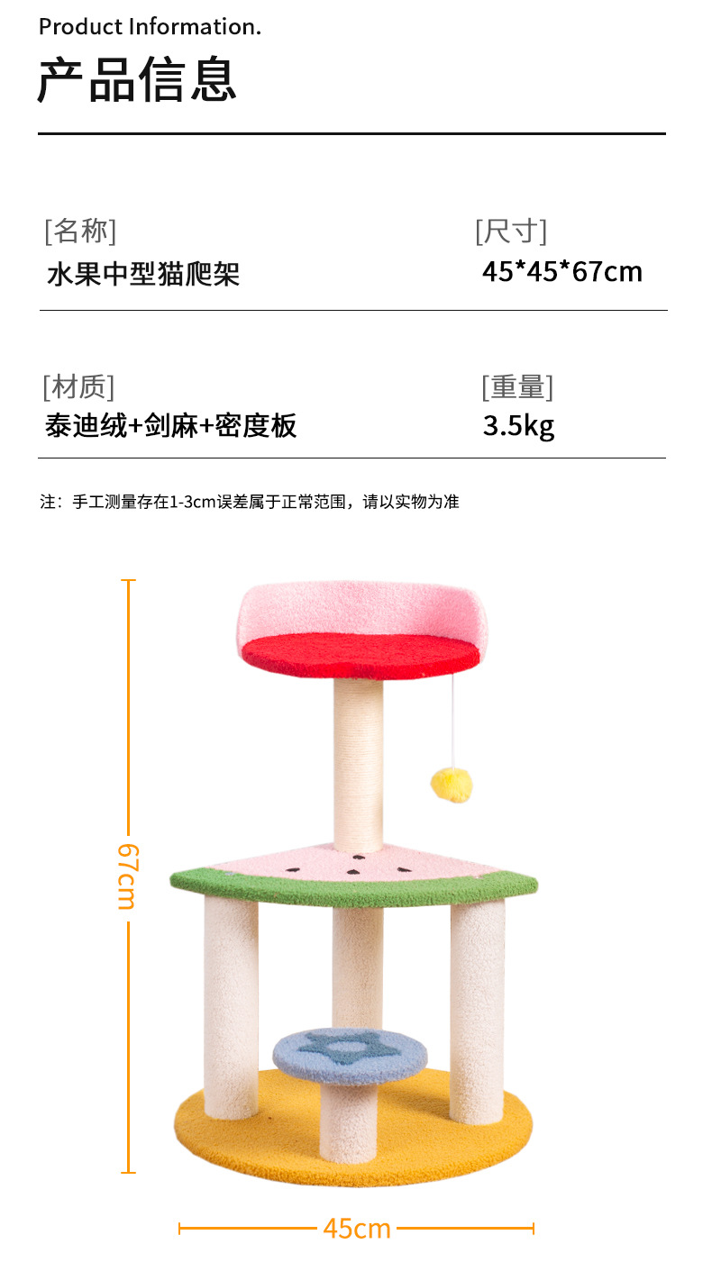 水果猫爬架多层跳台猫抓柱猫窝猫树一体睡觉磨爪不掉屑猫咪用品 投诉