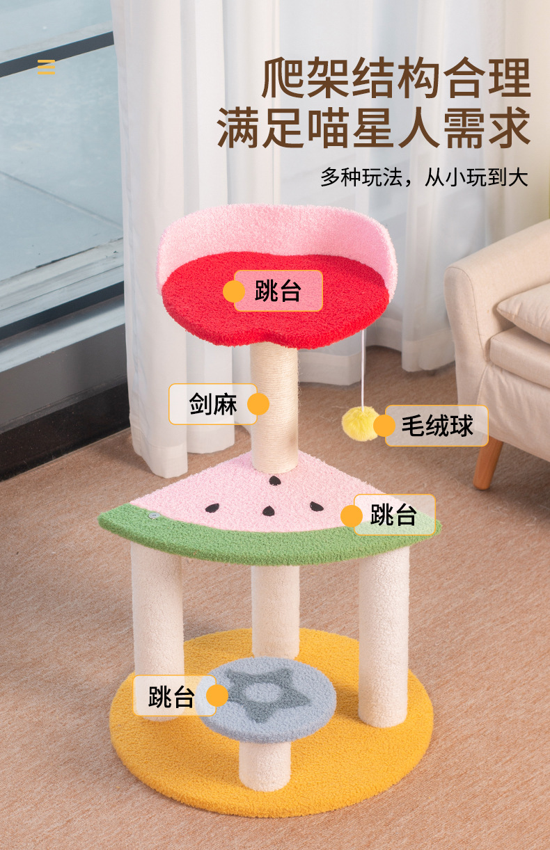 水果猫爬架多层跳台猫抓柱猫窝猫树一体睡觉磨爪不掉屑猫咪用品