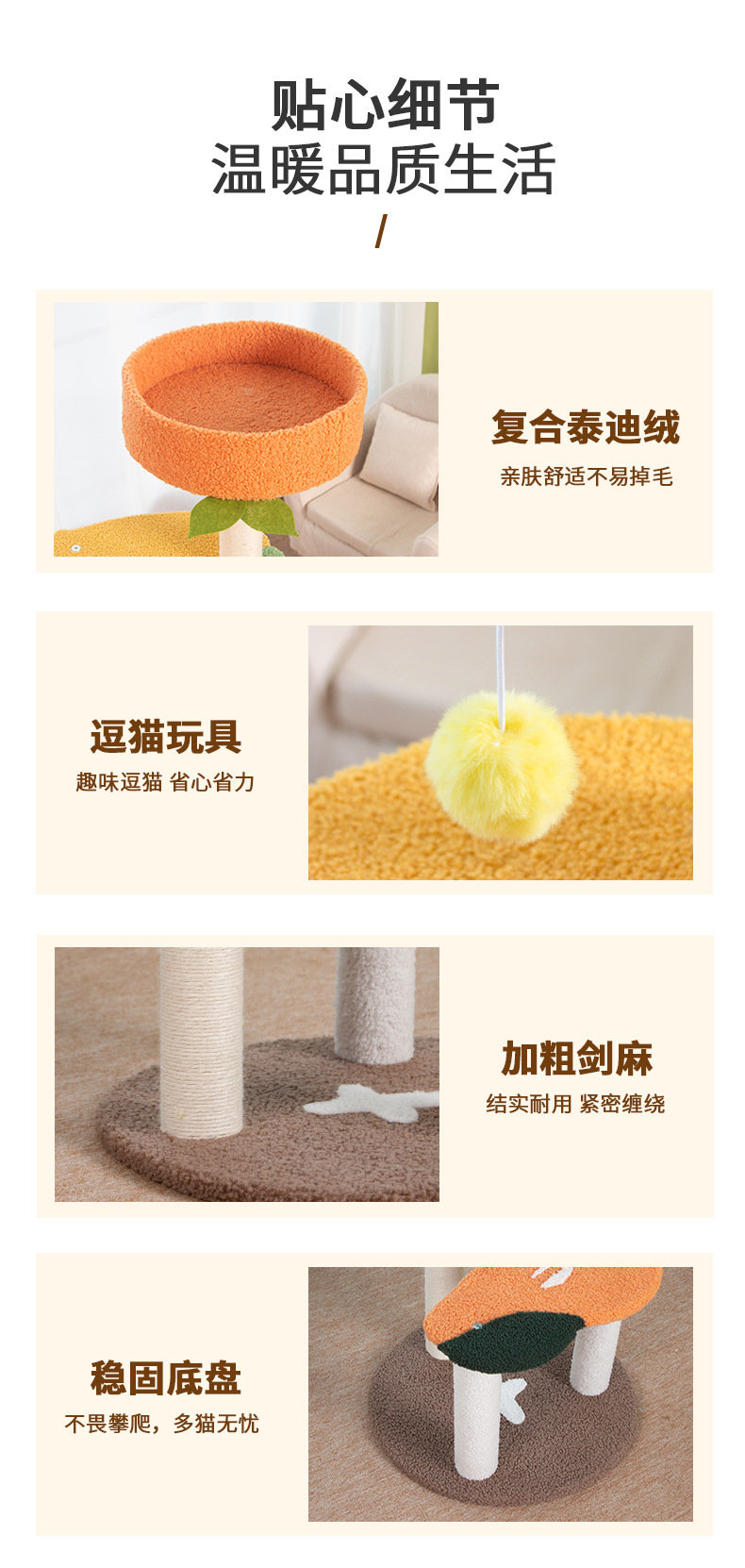猫爬架猫窝猫树一体磨爪睡觉不占地猫抓柱跳台豪华别墅猫咪玩具 投诉