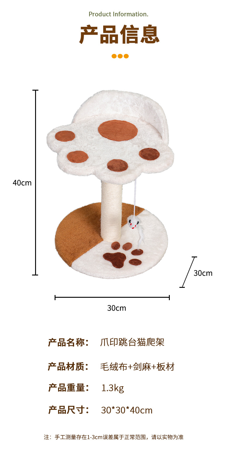 爆款爪印猫爬架猫咪用品小猫树自嗨解闷玩具小型猫抓板立式猫抓柱 投诉