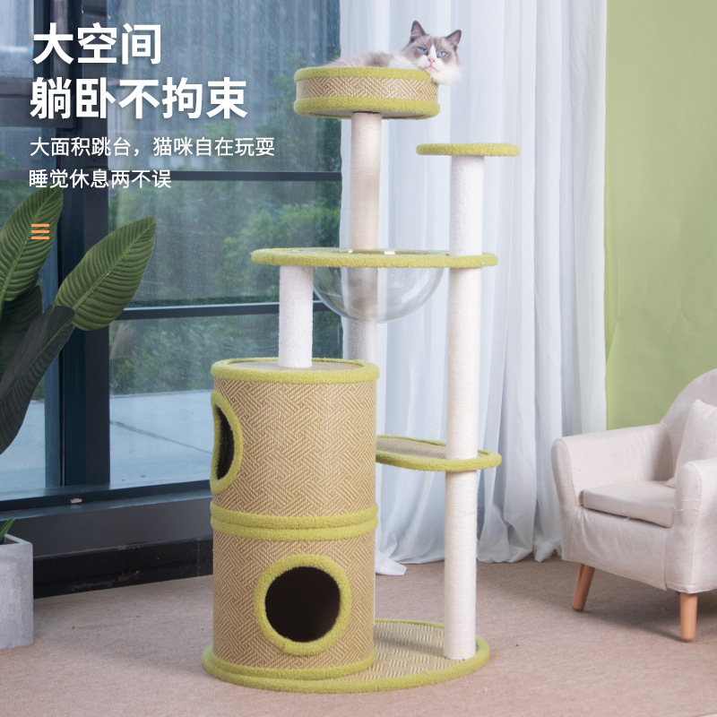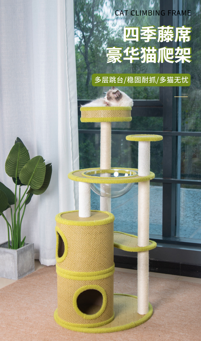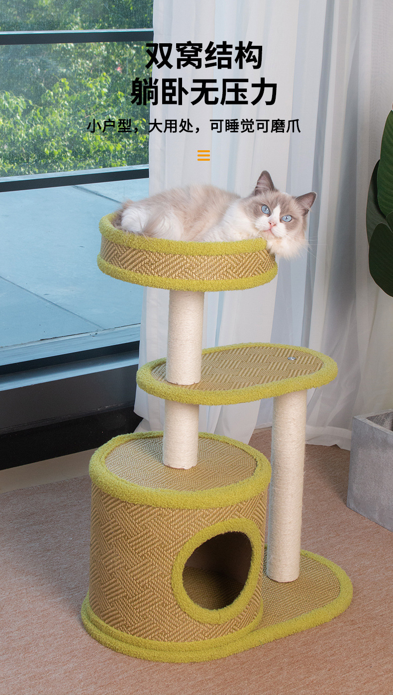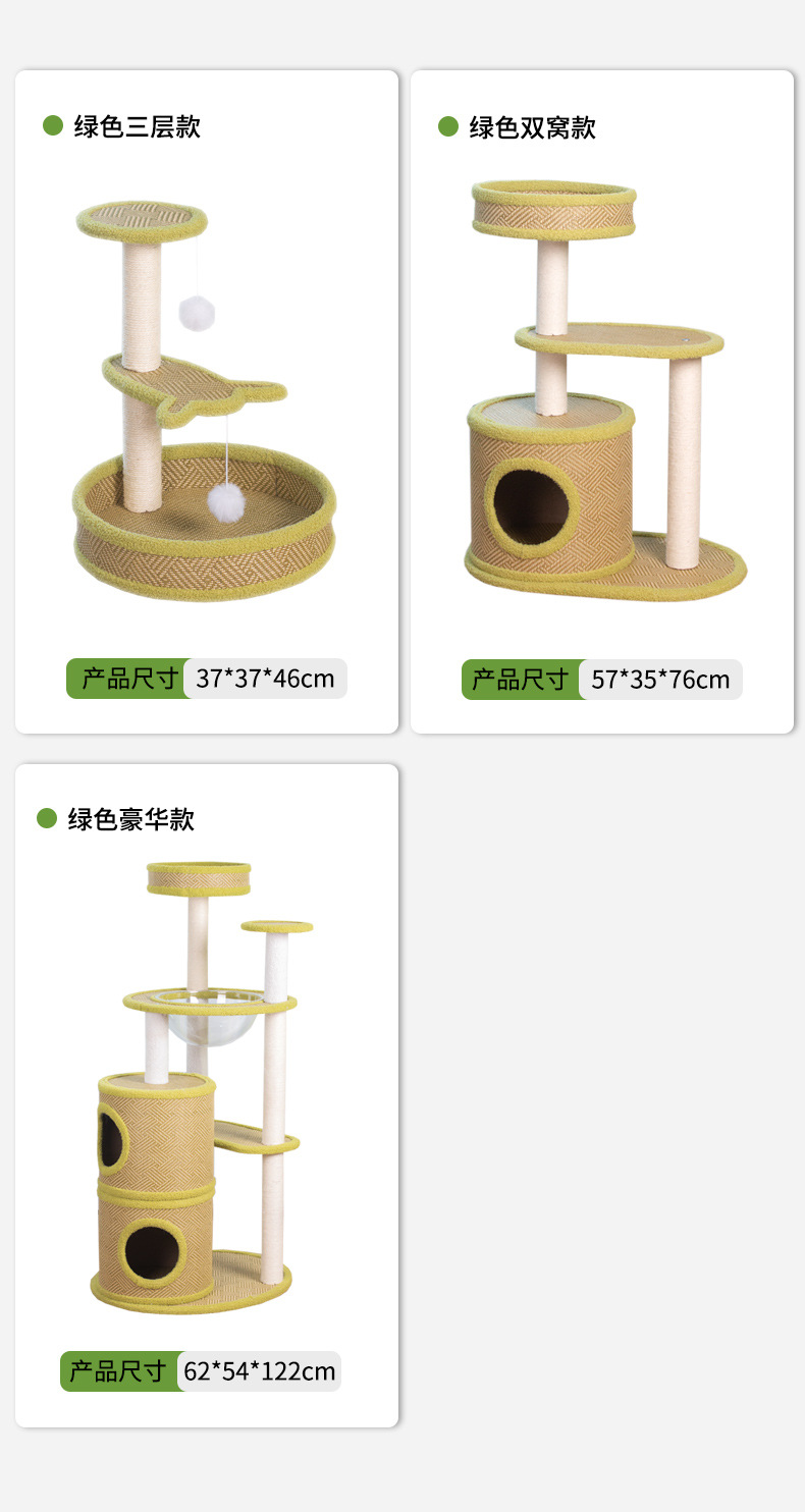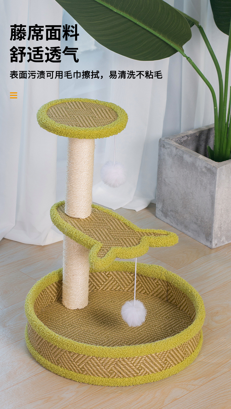厂家批发藤席猫爬架一体式四季剑麻猫抓板不掉屑大型猫树猫窝外贸 投诉