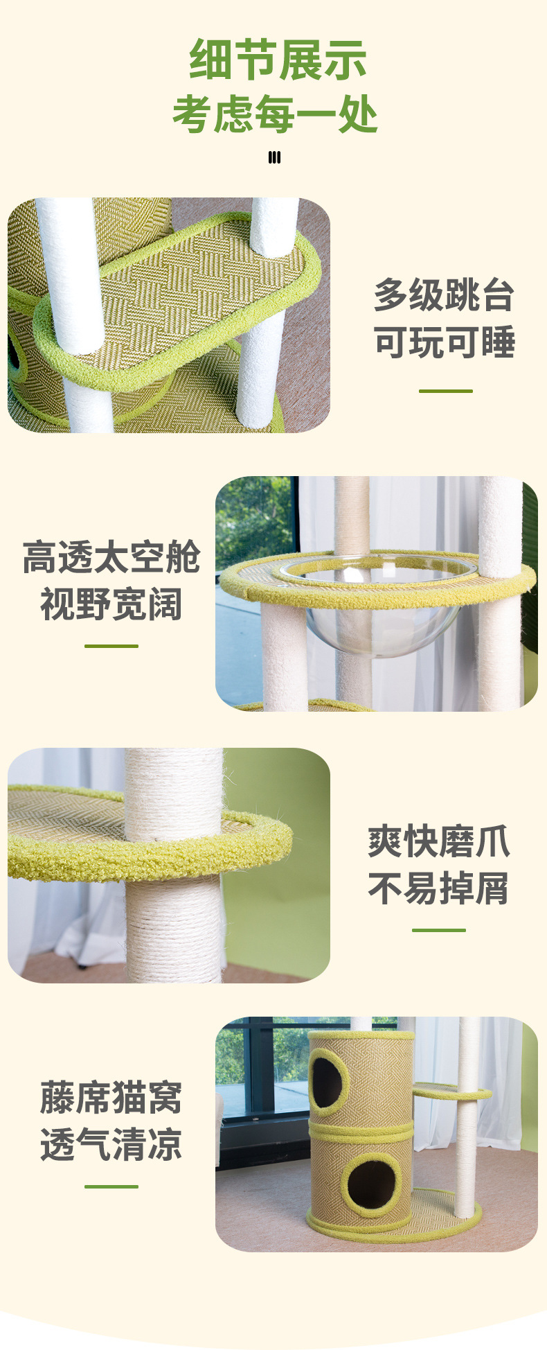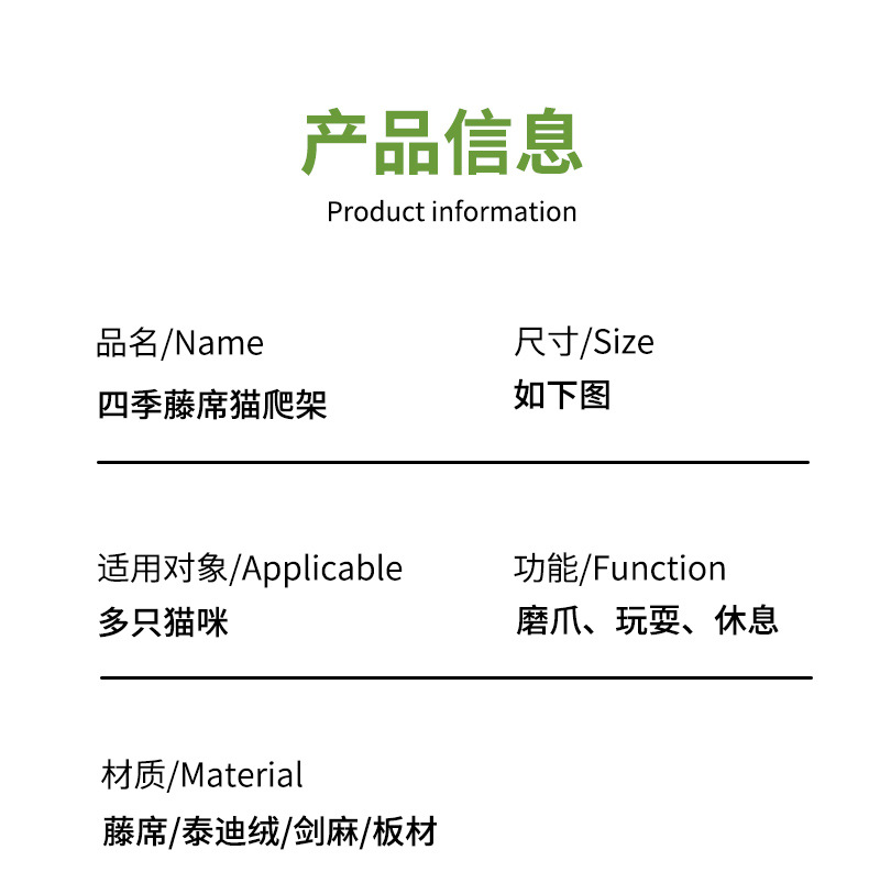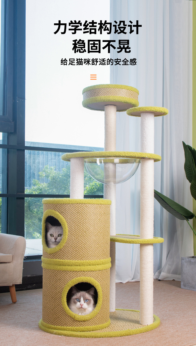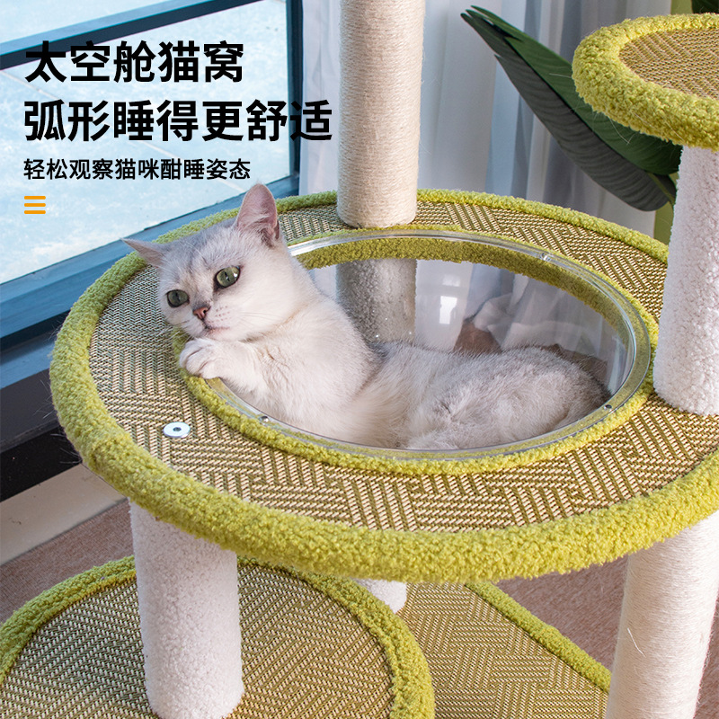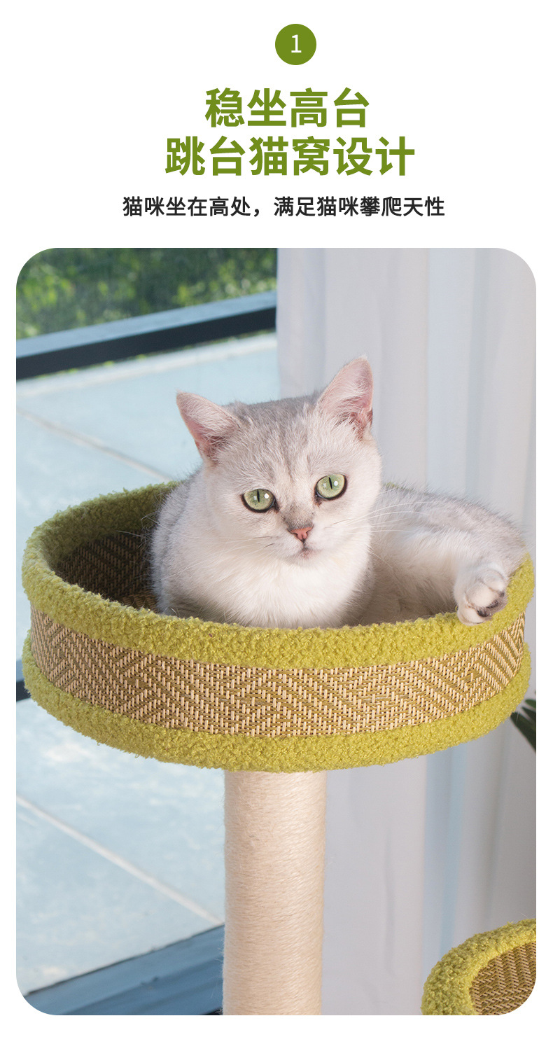 厂家批发藤席猫爬架一体式四季剑麻猫抓板不掉屑大型猫树猫窝外贸 投诉