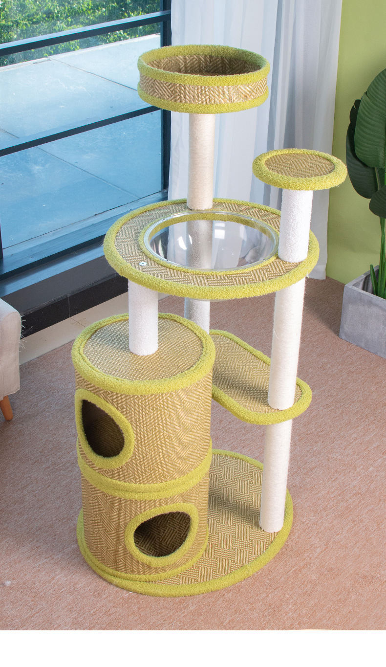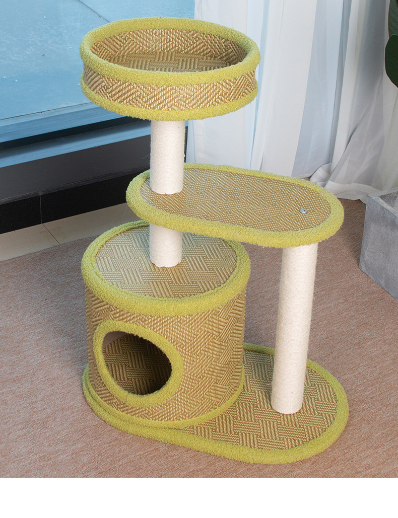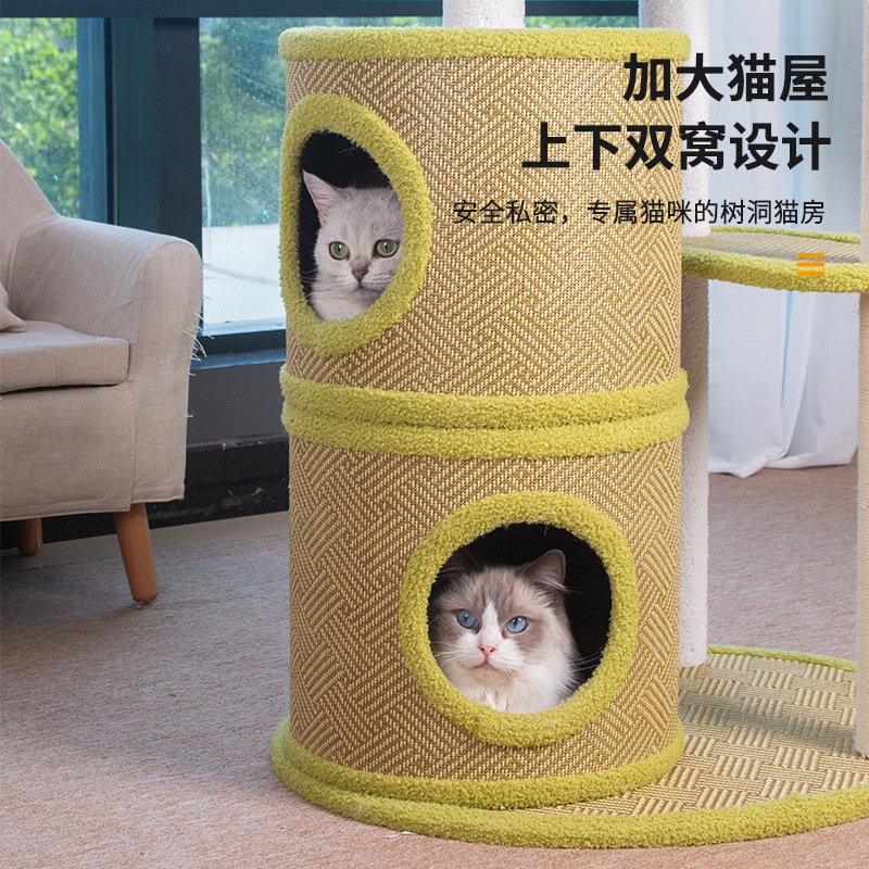 厂家批发藤席猫爬架一体式四季剑麻猫抓板不掉屑大型猫树猫窝外贸