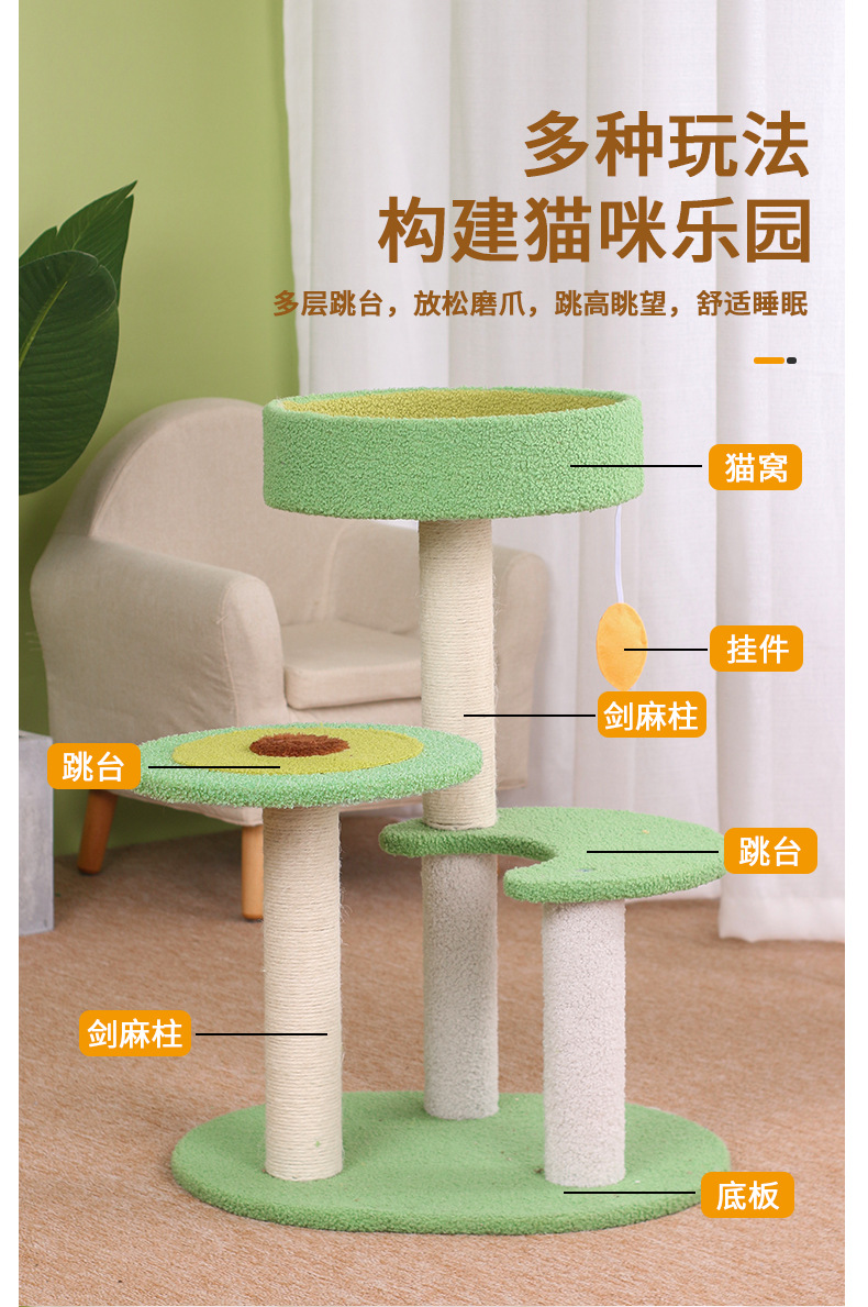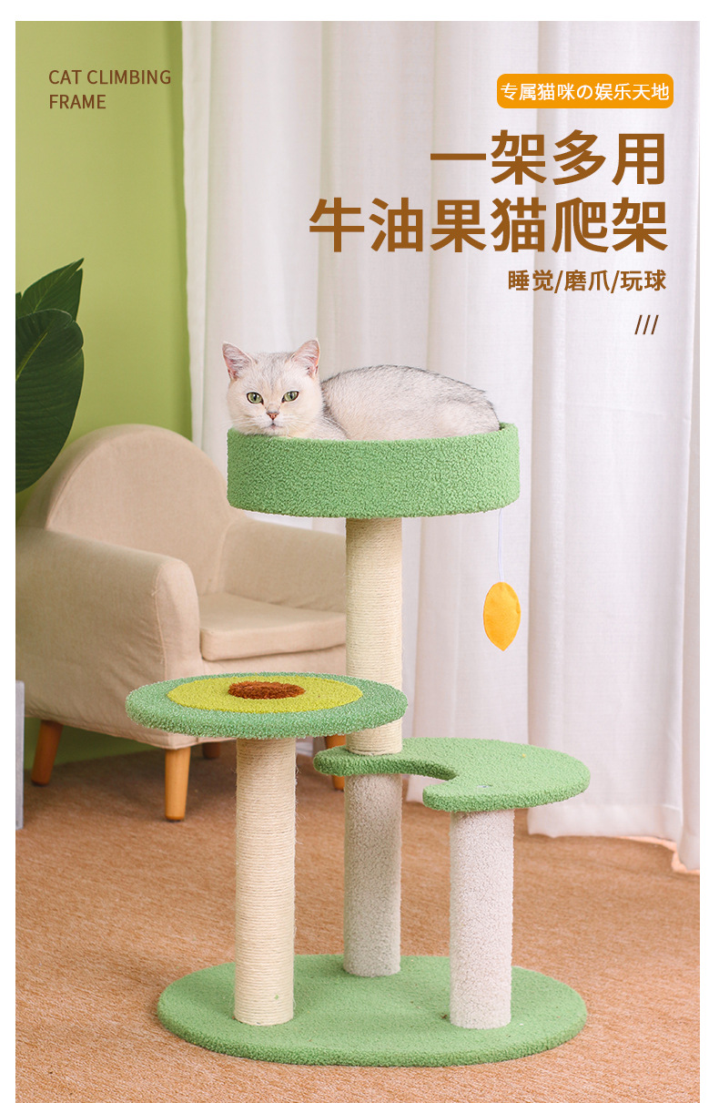 牛油果猫爬架睡觉磨爪一体设计剑麻猫抓柱小型不占地猫咪玩具
