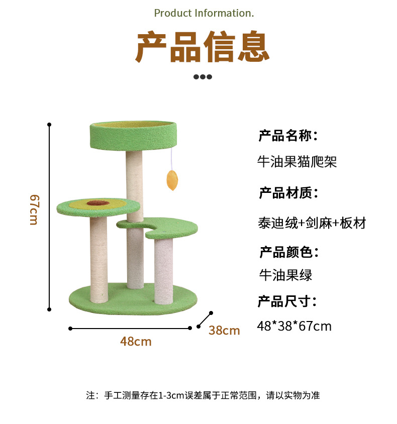 牛油果猫爬架睡觉磨爪一体设计剑麻猫抓柱小型不占地猫咪玩具 投诉