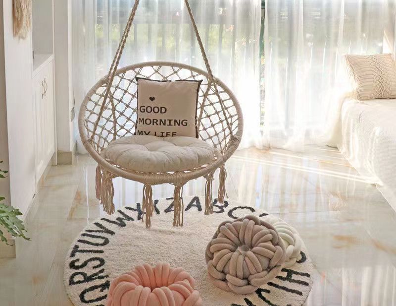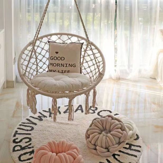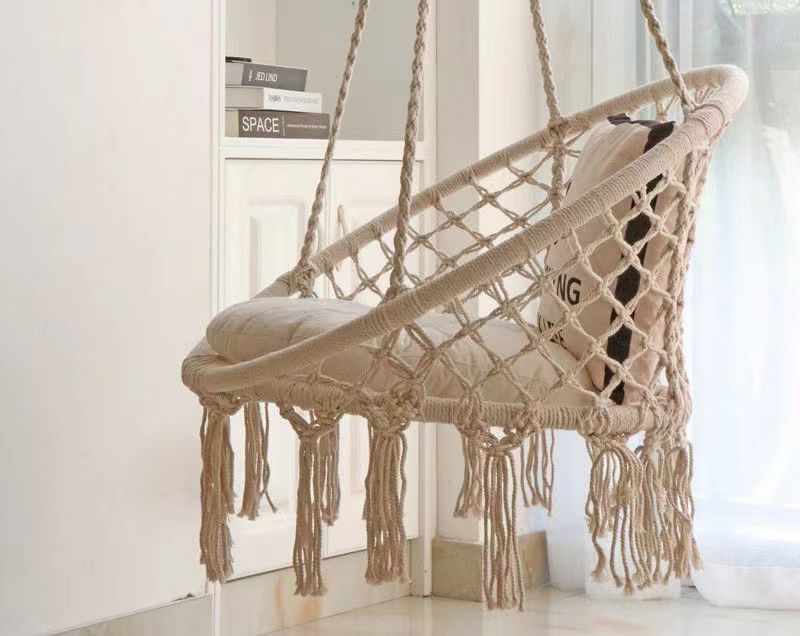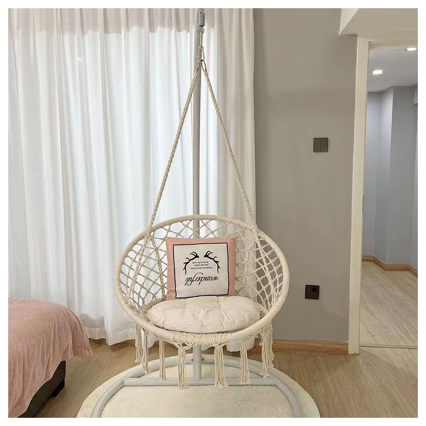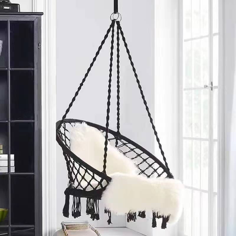 ins网红秋千流苏吊椅 家用室内编织吊篮藤椅阳台北欧风懒人摇篮椅