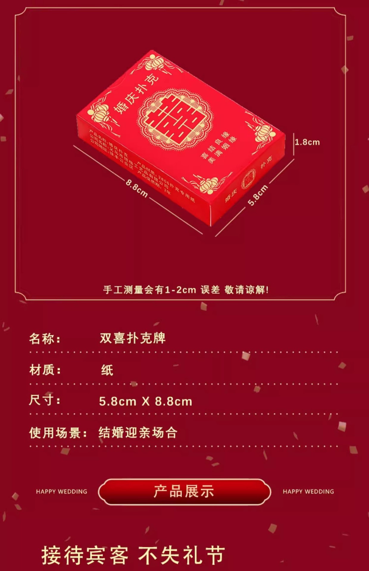 婚庆用品结婚扑克喜字纸牌婚宴娱乐婚礼回礼创意个性小礼品囍牌厚 投诉