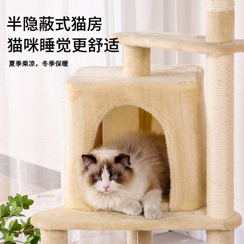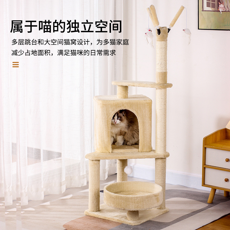 米色大型猫爬架剑麻猫抓板不掉屑猫树跳台磨爪自嗨玩具用品