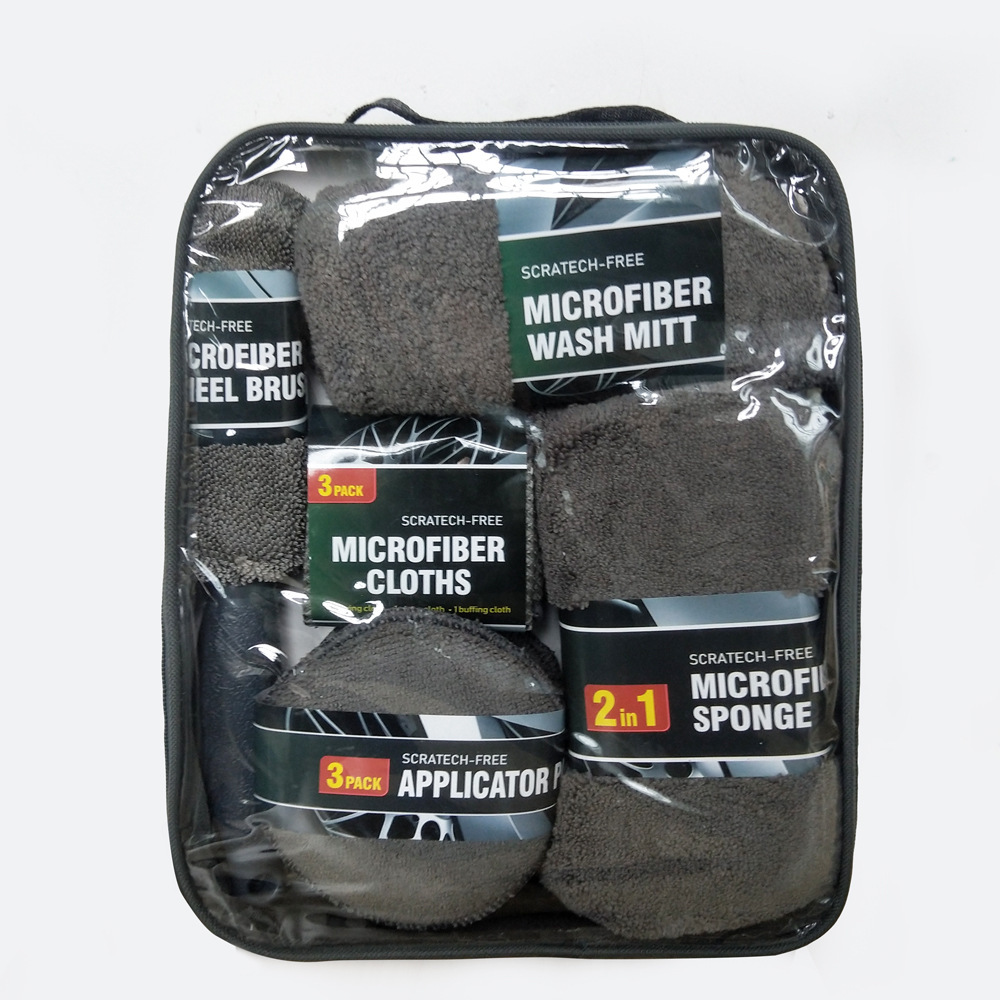 内含产品:汽车轮胎刷1件+毛巾布打蜡饼3个+8字型高低毛洗车海绵块+玻璃巾/经编毛巾/华夫格+高低毛手套1只