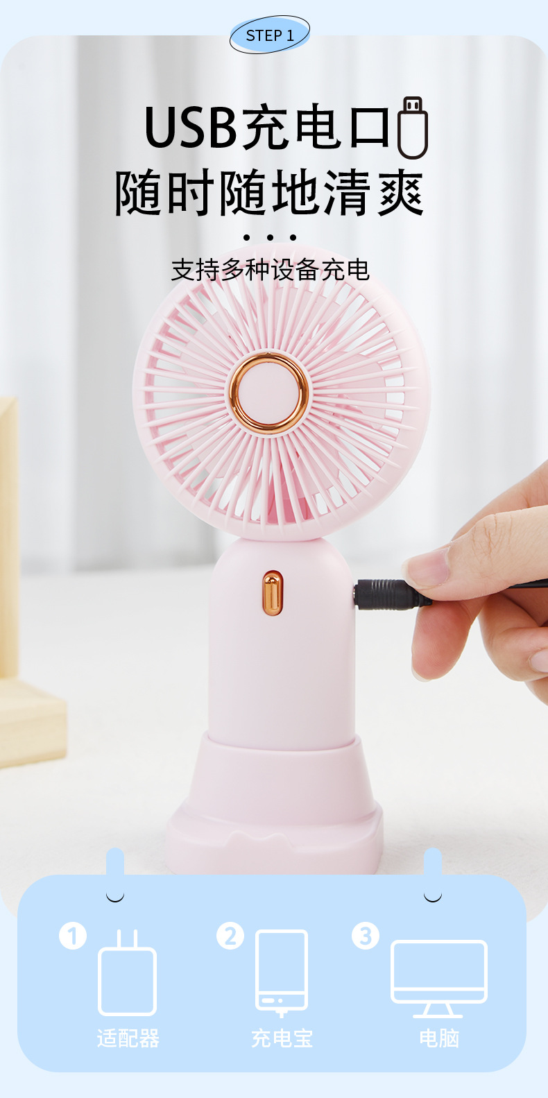 跨境批发挂绳小风扇USB充电式儿童手持风扇礼品便携手持小风扇