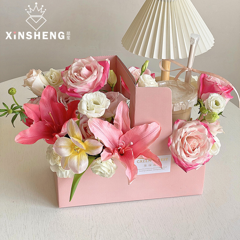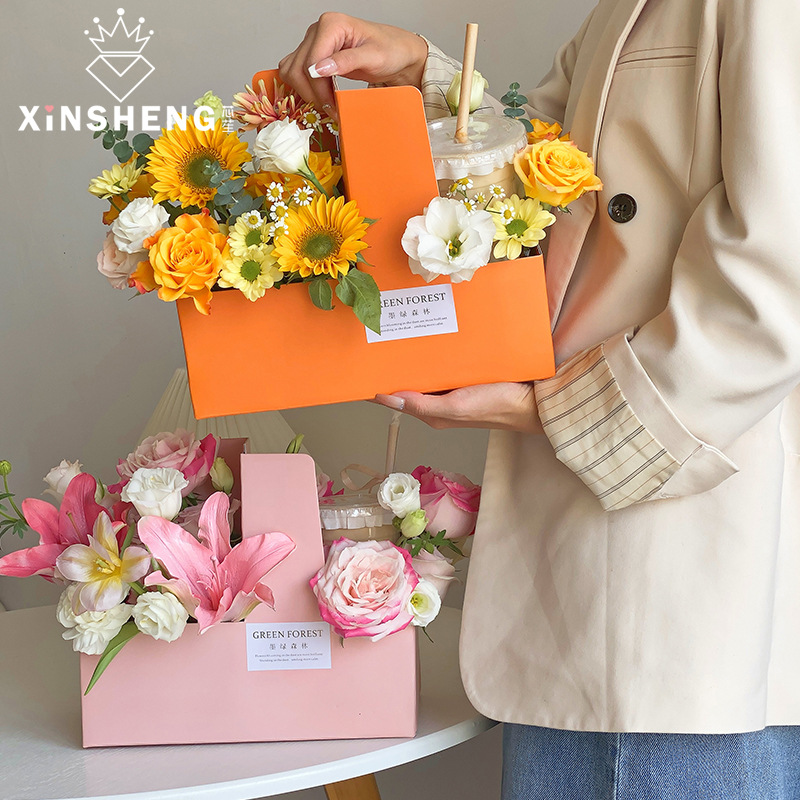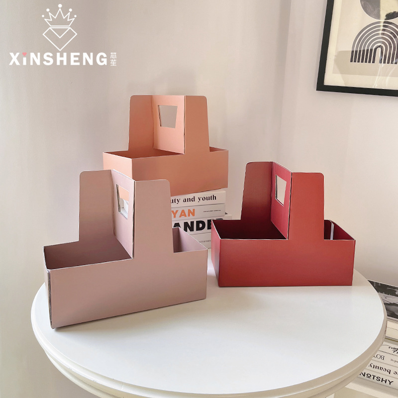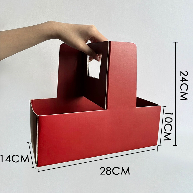 芯苼 原创加大瓦楞手提盒奶茶咖啡蛋糕包装插花盒鲜花花艺diy资材
