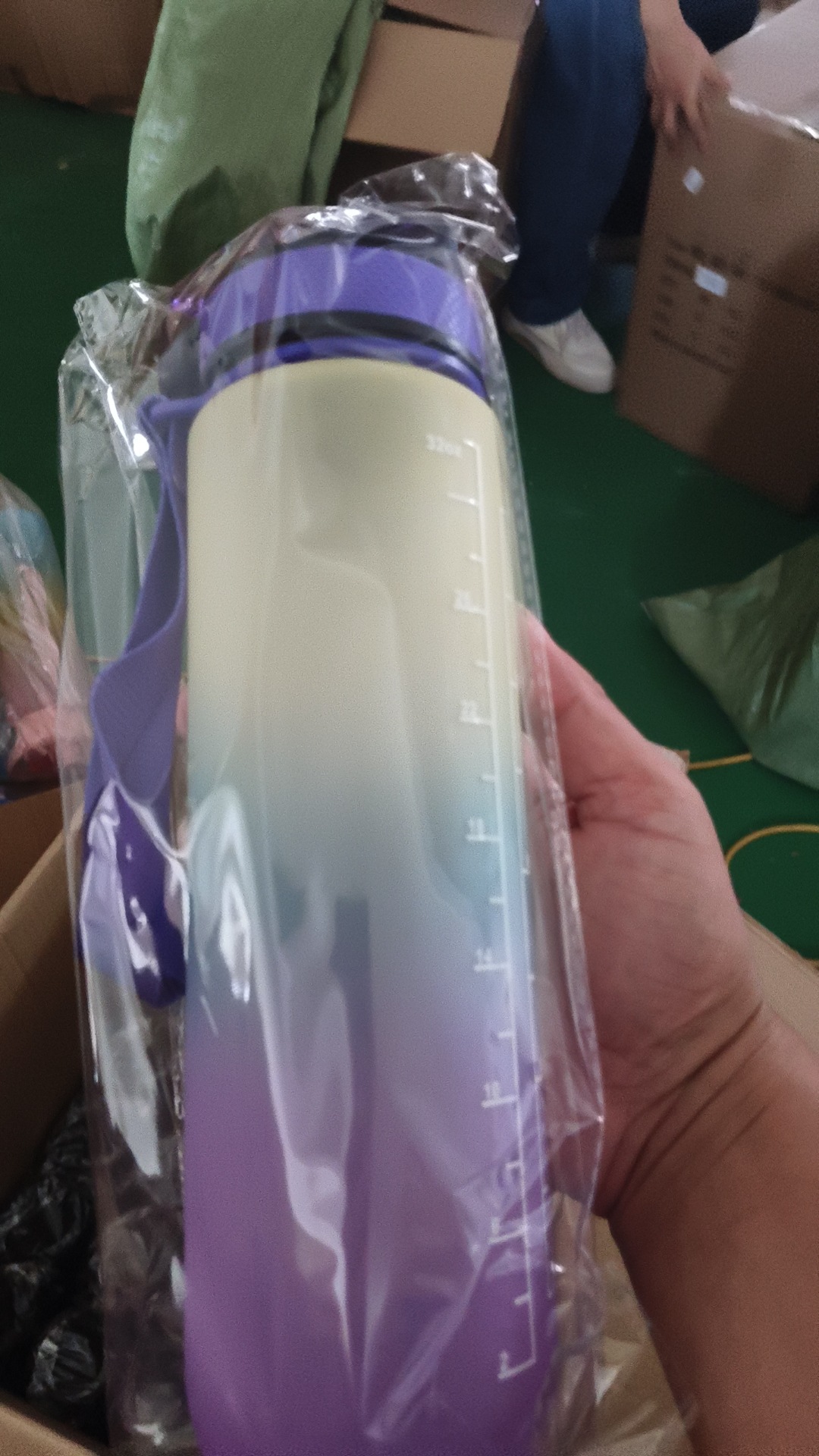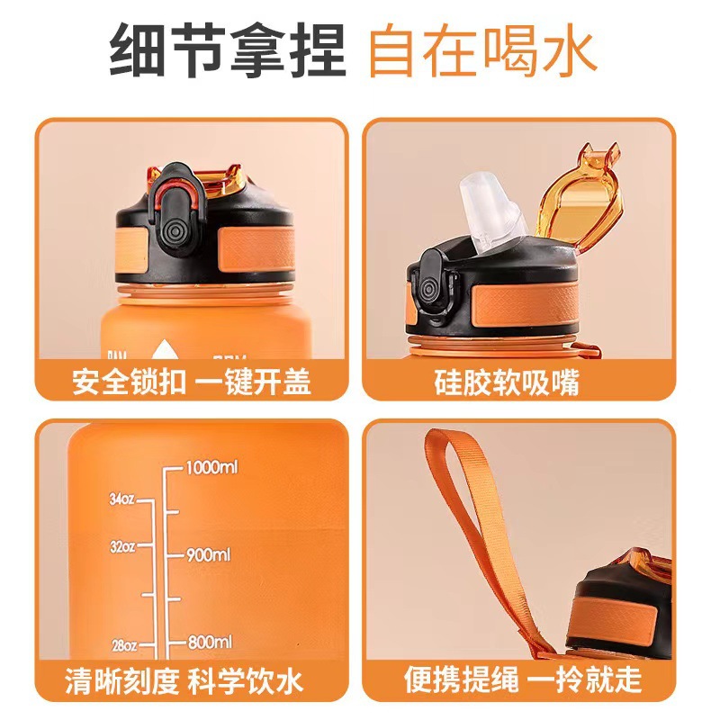 渐变水壶1000ML渐变色吸嘴杯塑料杯运动水杯吸管杯磨砂手提太空杯 投诉