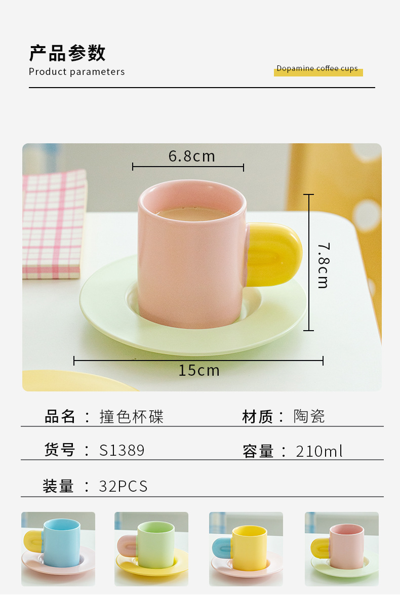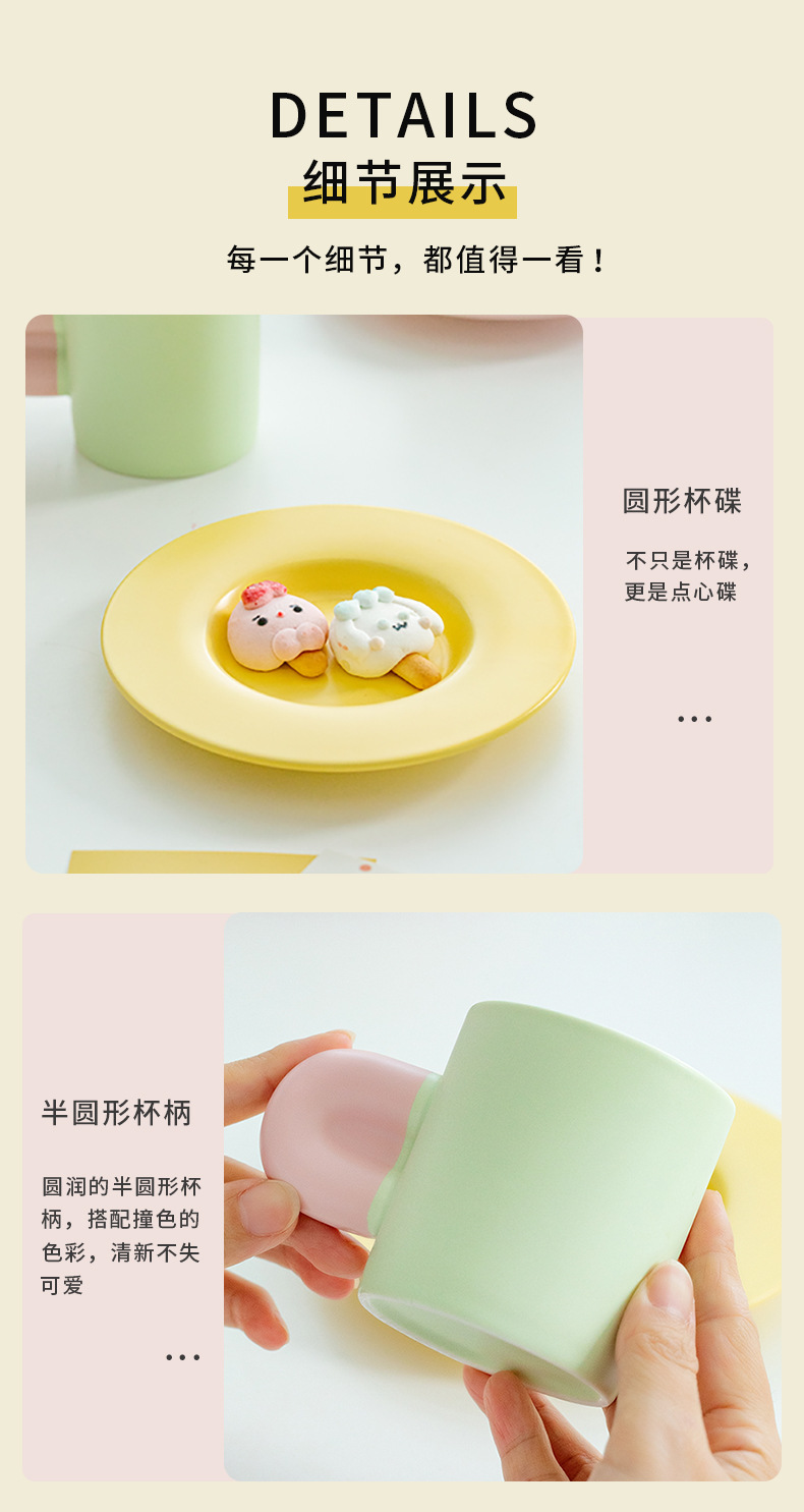 马卡龙撞色陶瓷杯碟定制高颜值咖啡杯情侣学生喝水杯伴手礼马克杯 English | 投诉