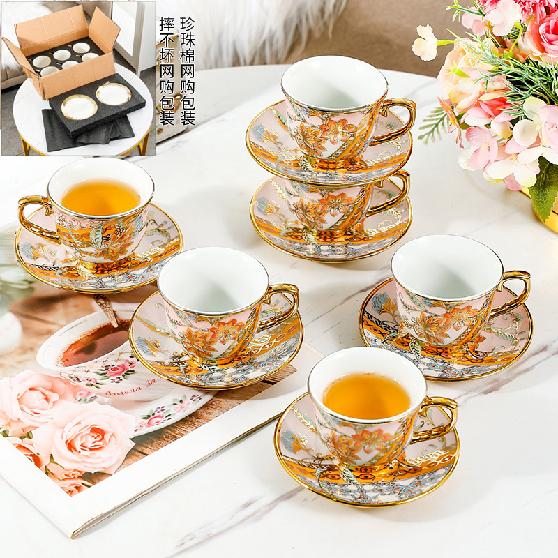 陶瓷咖啡杯套装中东热销小奢华金边陶瓷奶茶杯酒店美式咖啡杯杯碟 English | 投诉