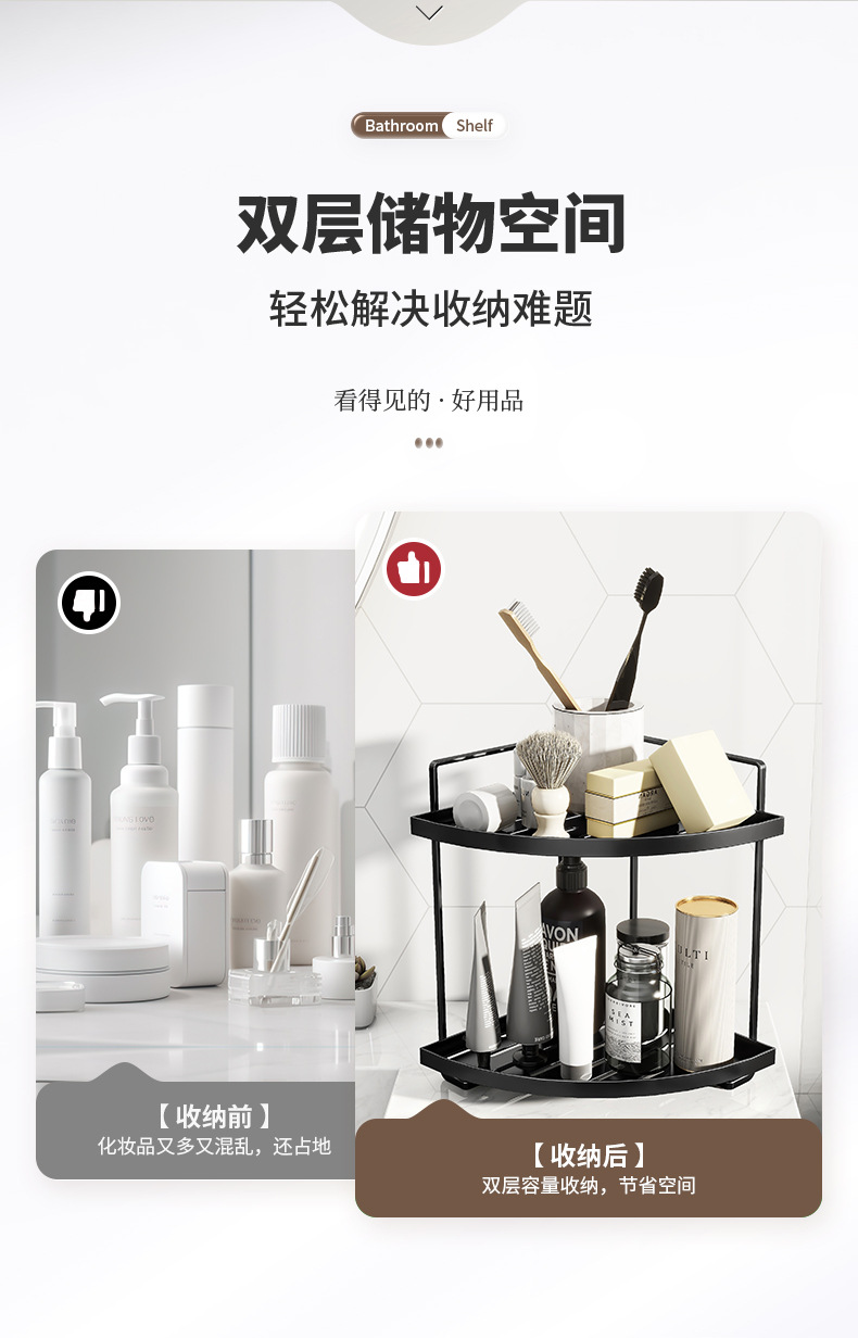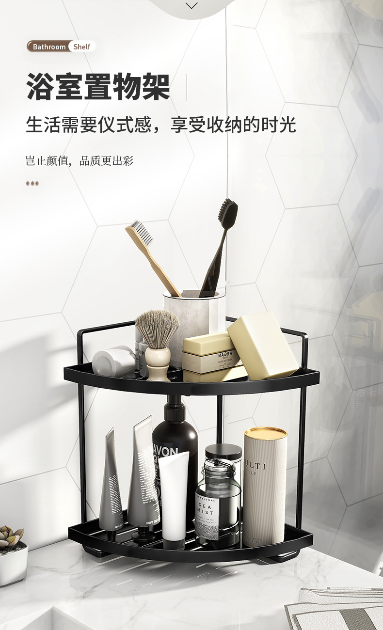 卫生间三角双层置物架台面浴室厕所洗漱台洗手间化妆品收纳架 English | 投诉