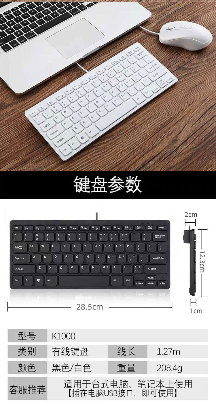 K1000有线键盘商务办公静音有线键盘跨境直销工厂热卖小键盘现货 投诉
