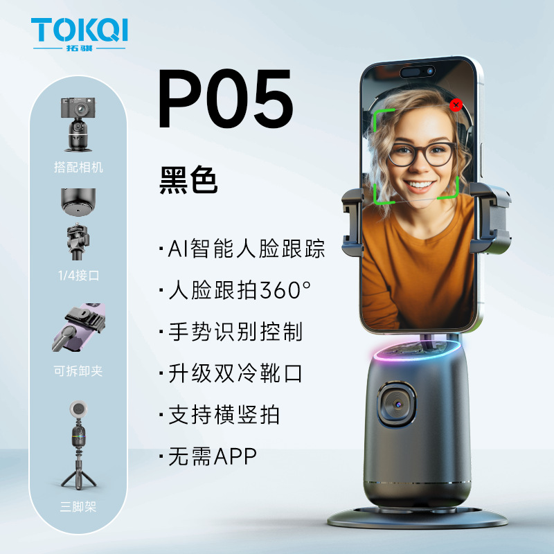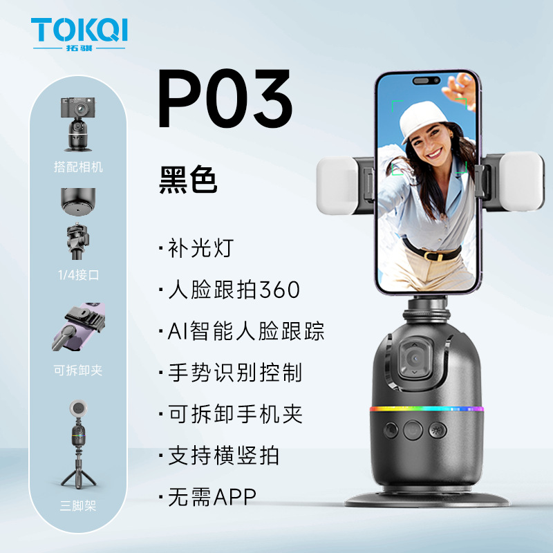 新款手机跟拍云台 P02桌面抖音直播全景跟拍支架AI人脸识别360°