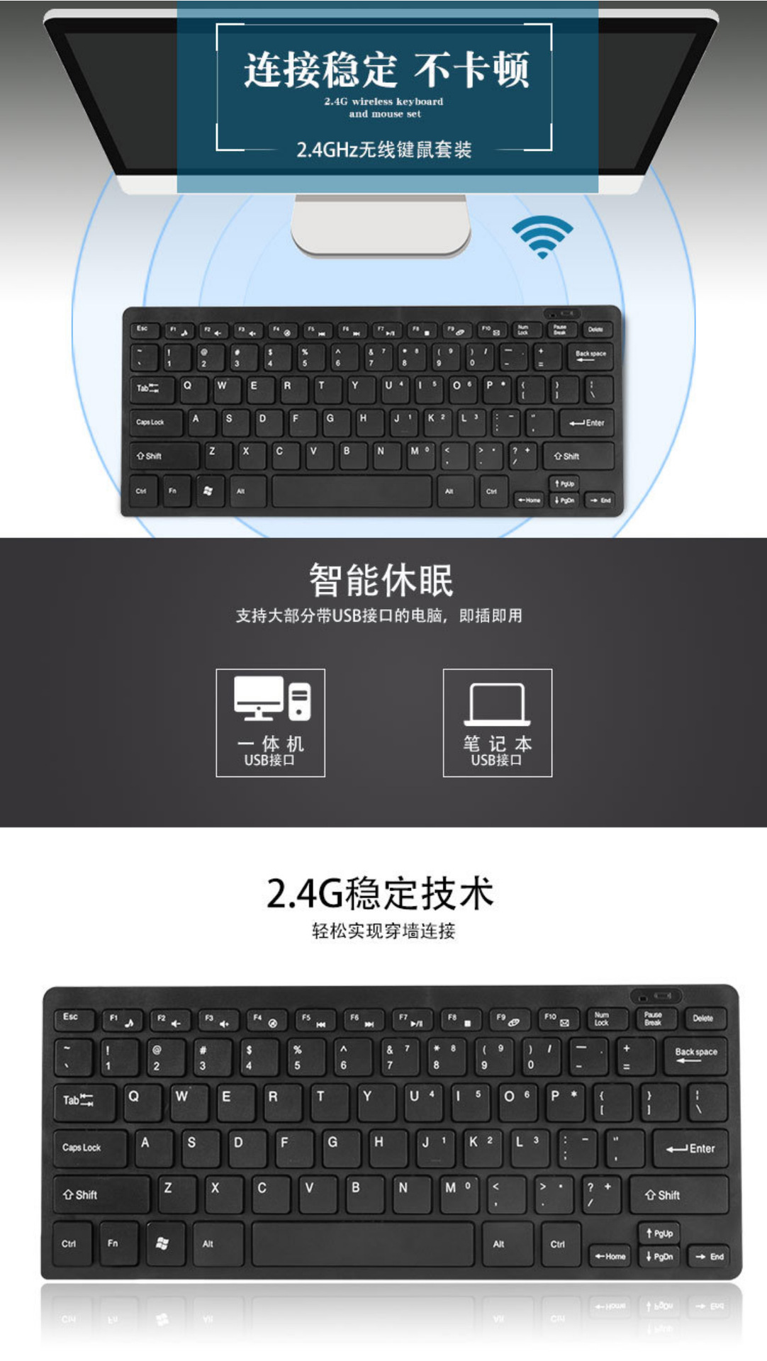 厂家直销 2.4G无线键盘鼠标超薄键鼠套装笔记本电脑办公商务键盘 投诉