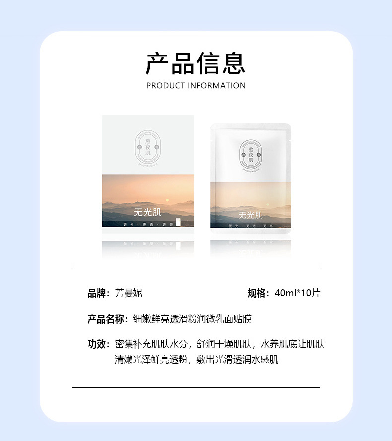 芳曼妮细嫩鲜亮透滑粉润微乳面贴膜巨保湿充盈补水光亮微乳面贴膜