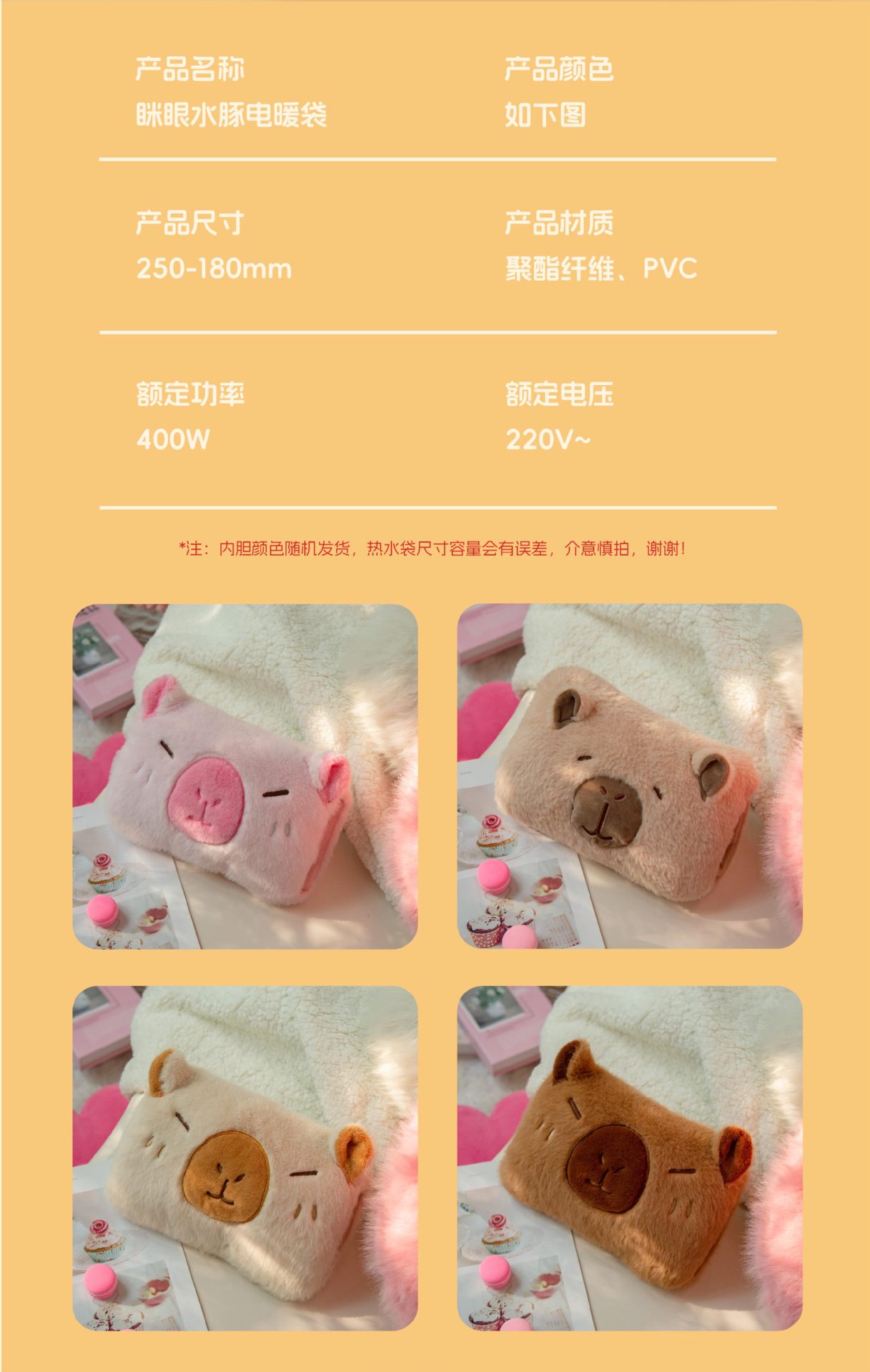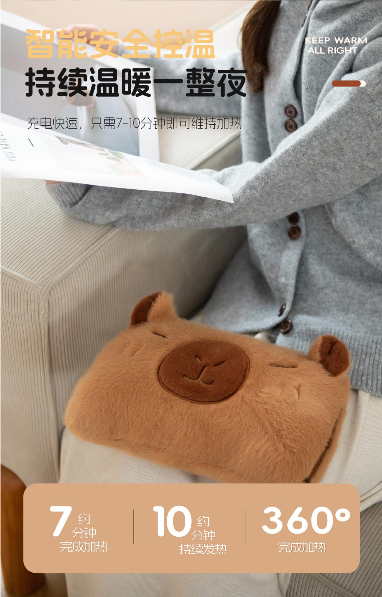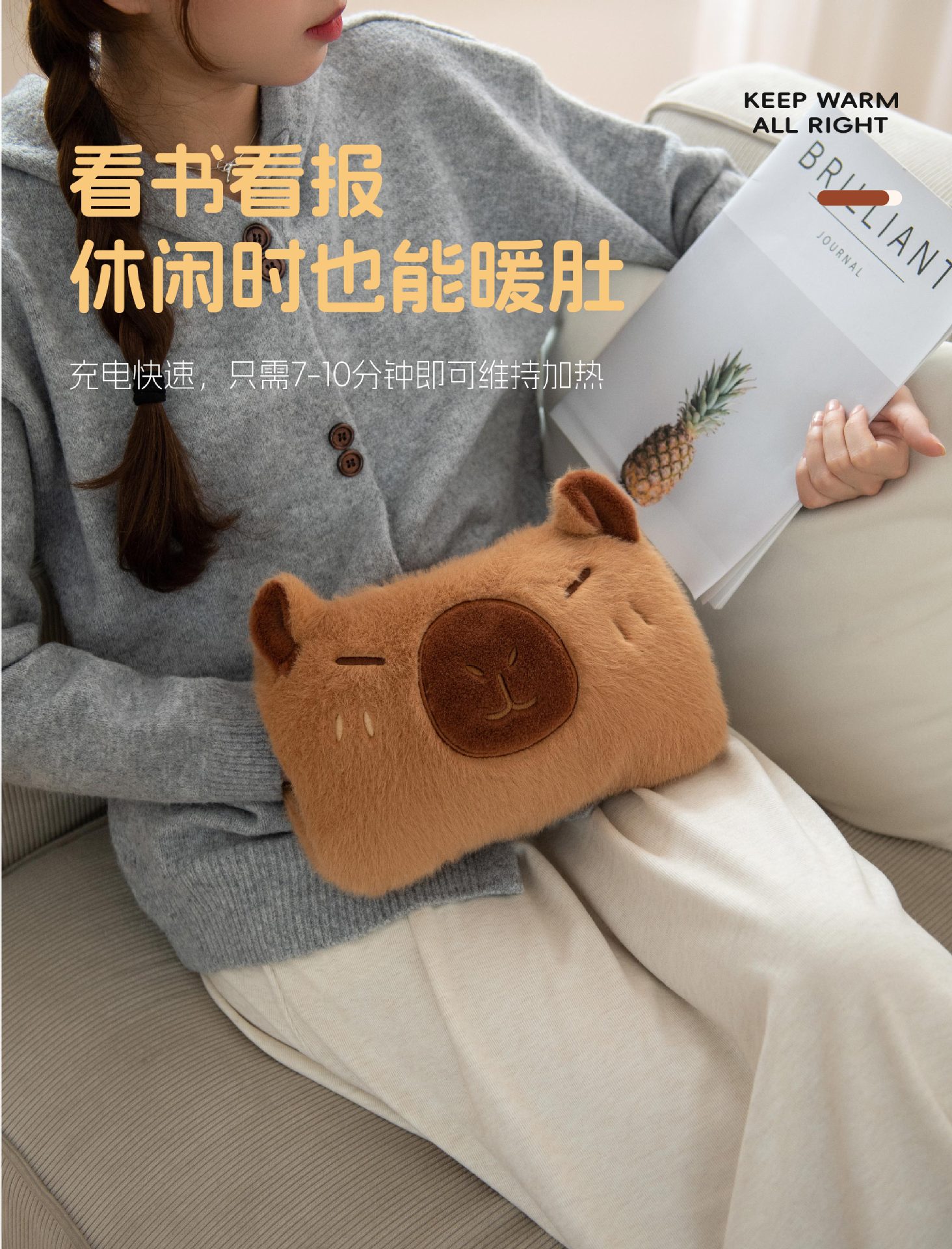 充电热水袋卡皮巴拉可拆卸暖手袋国标内胆暖被窝双插手家用暖宝宝 English | 投诉