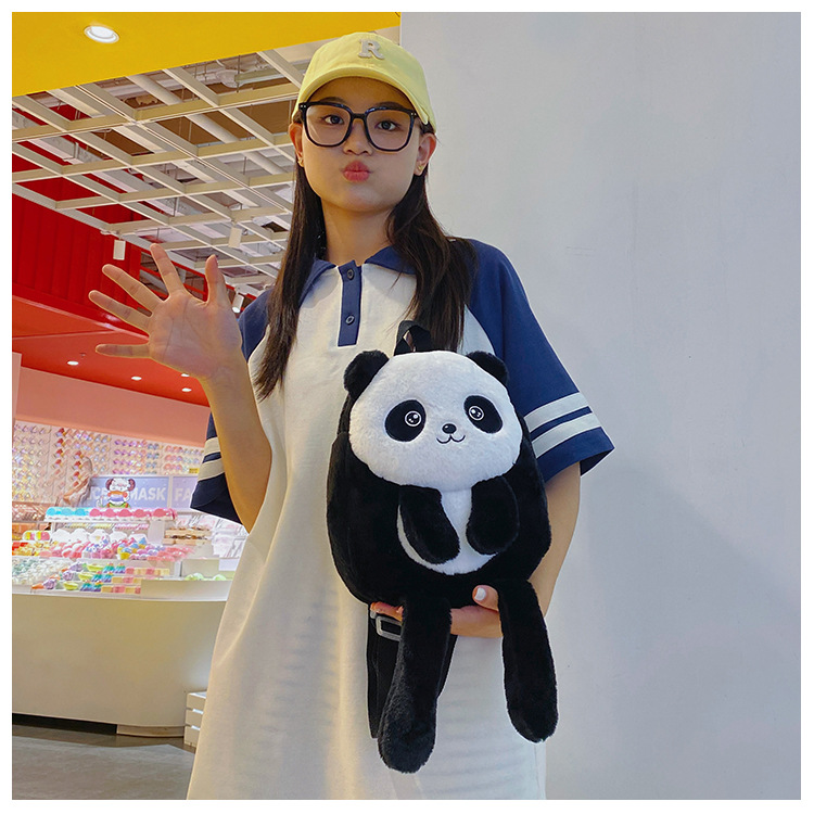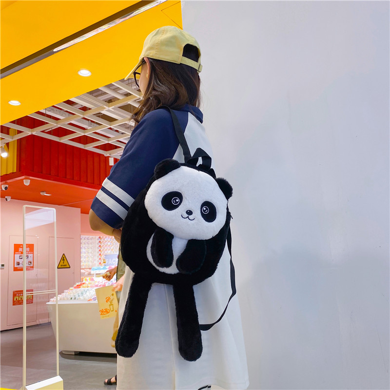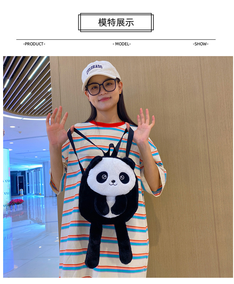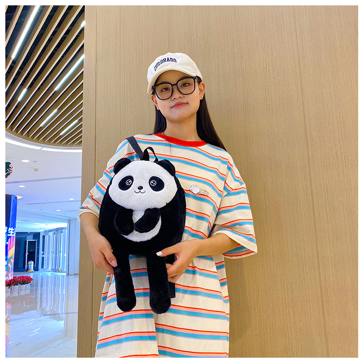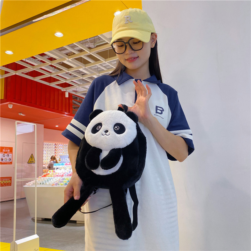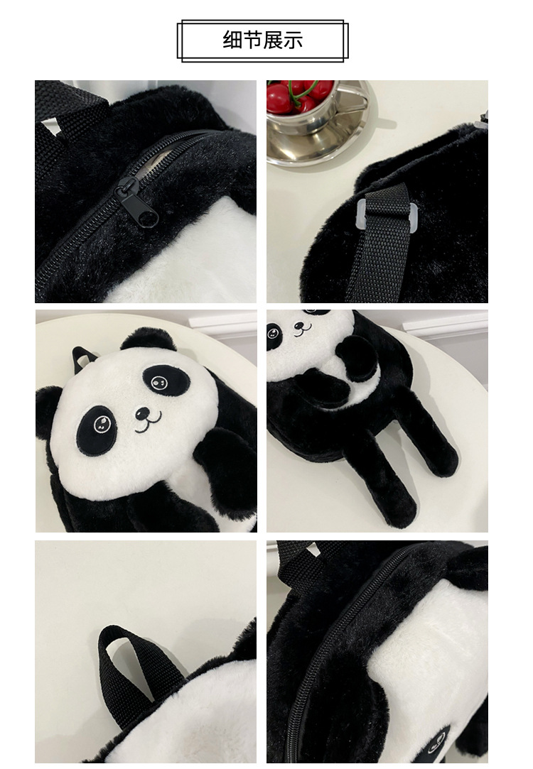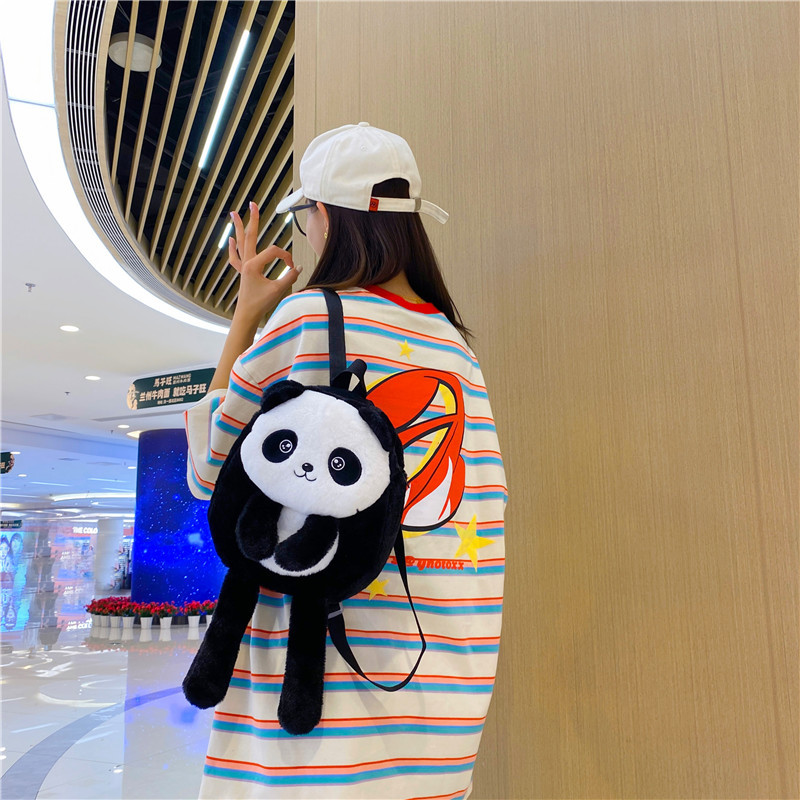 新款网红大容量双肩包立体熊猫单肩斜跨包可爱卡通毛绒包包女批发 投诉