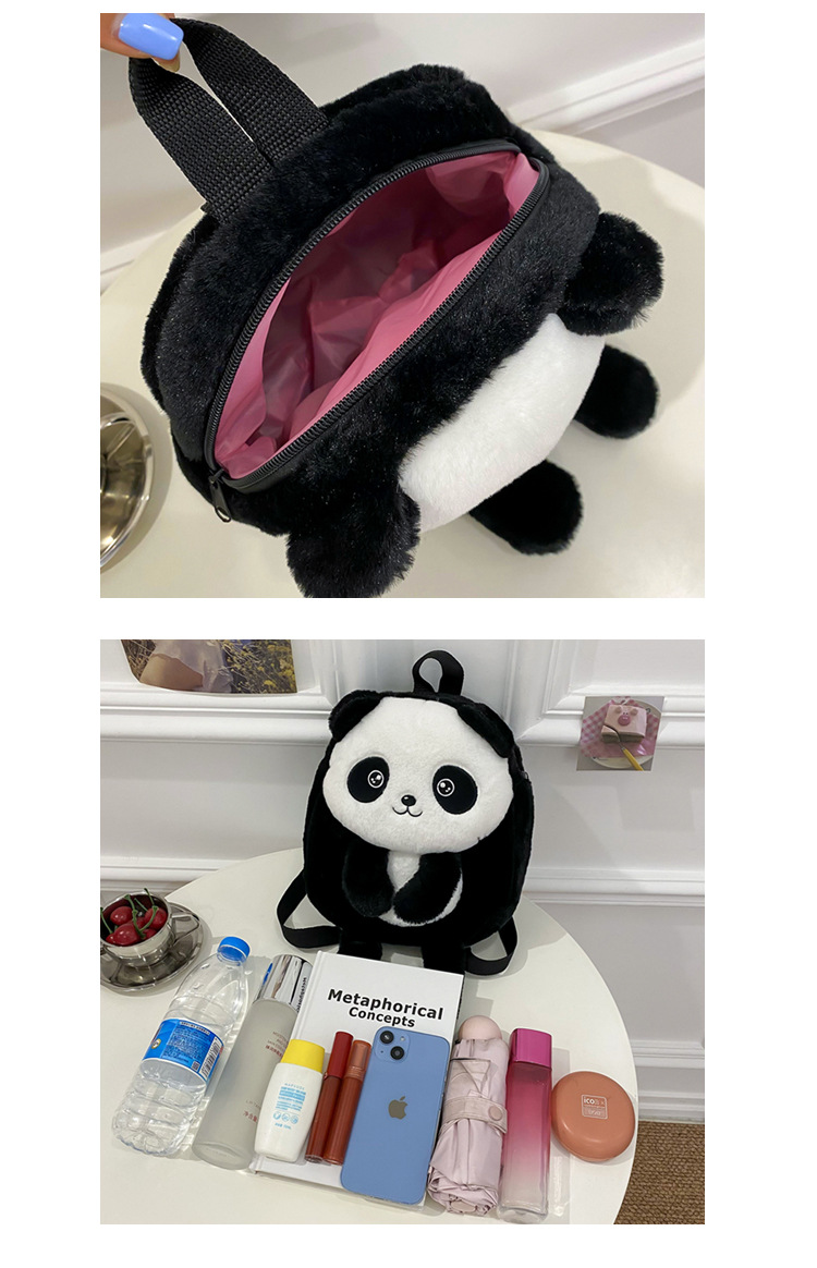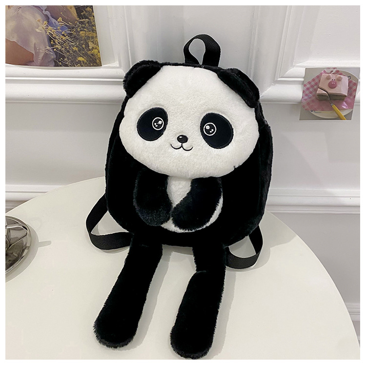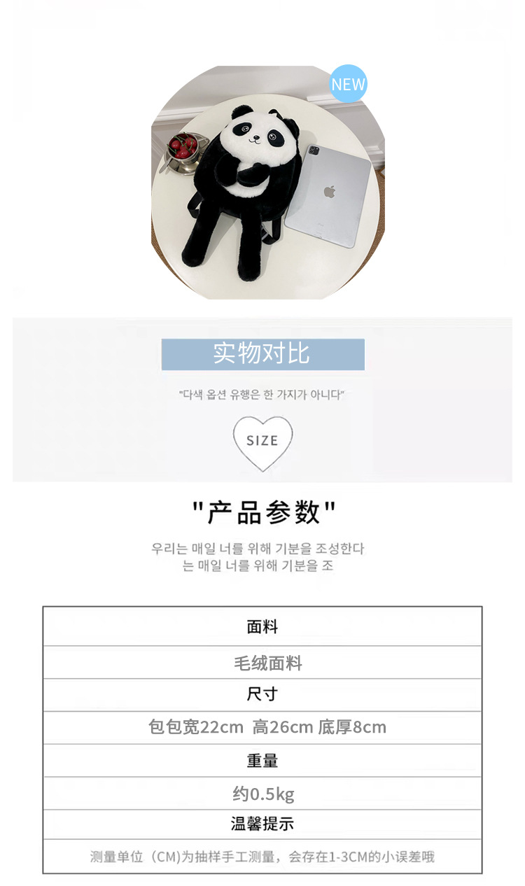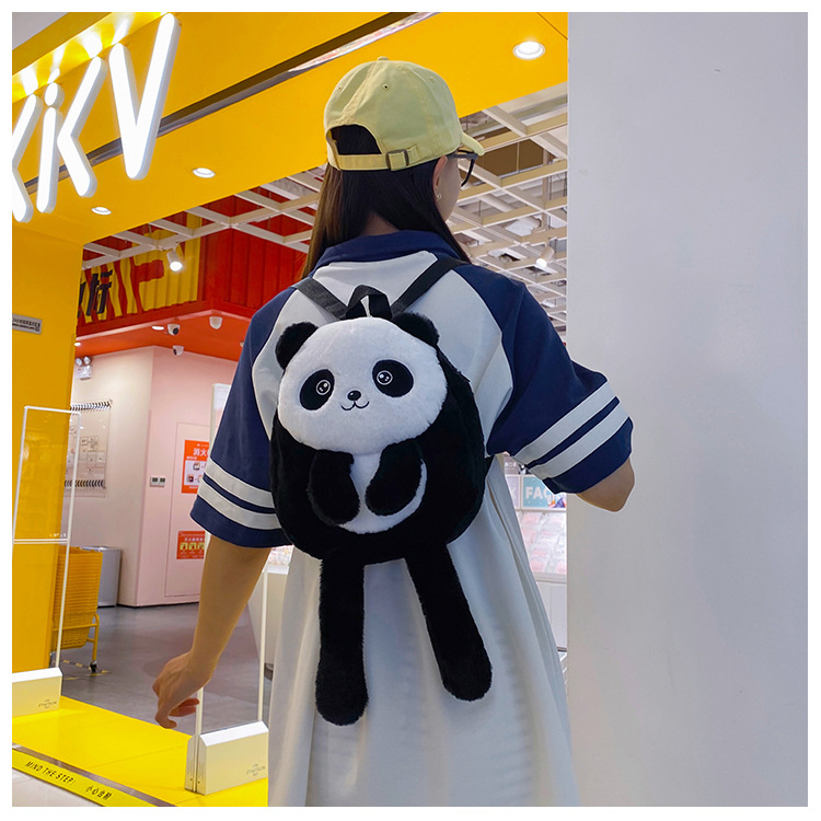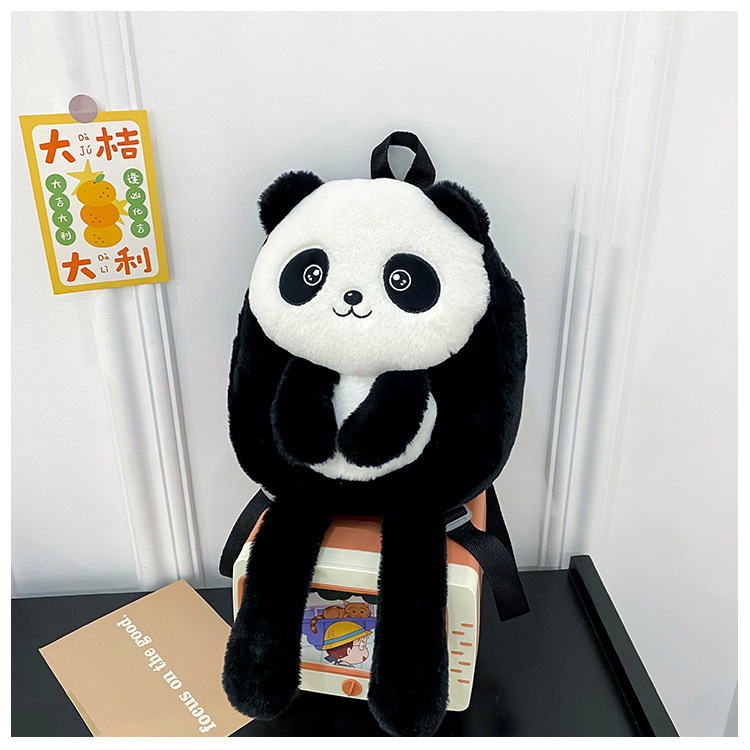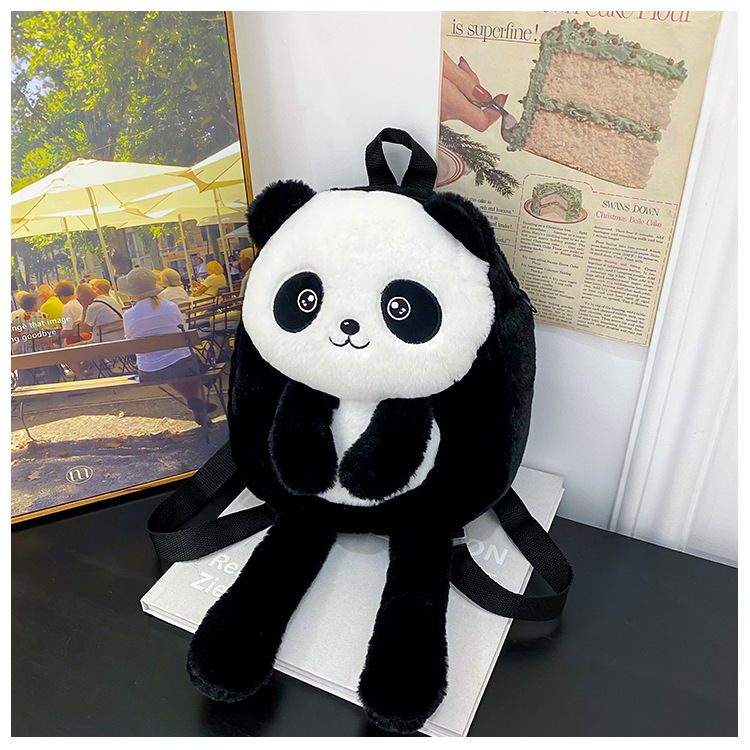 新款网红大容量双肩包立体熊猫单肩斜跨包可爱卡通毛绒包包女批发 投诉