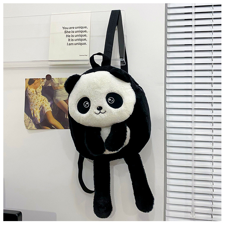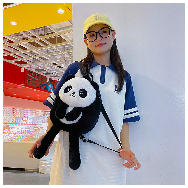 新款网红大容量双肩包立体熊猫单肩斜跨包可爱卡通毛绒包包女批发