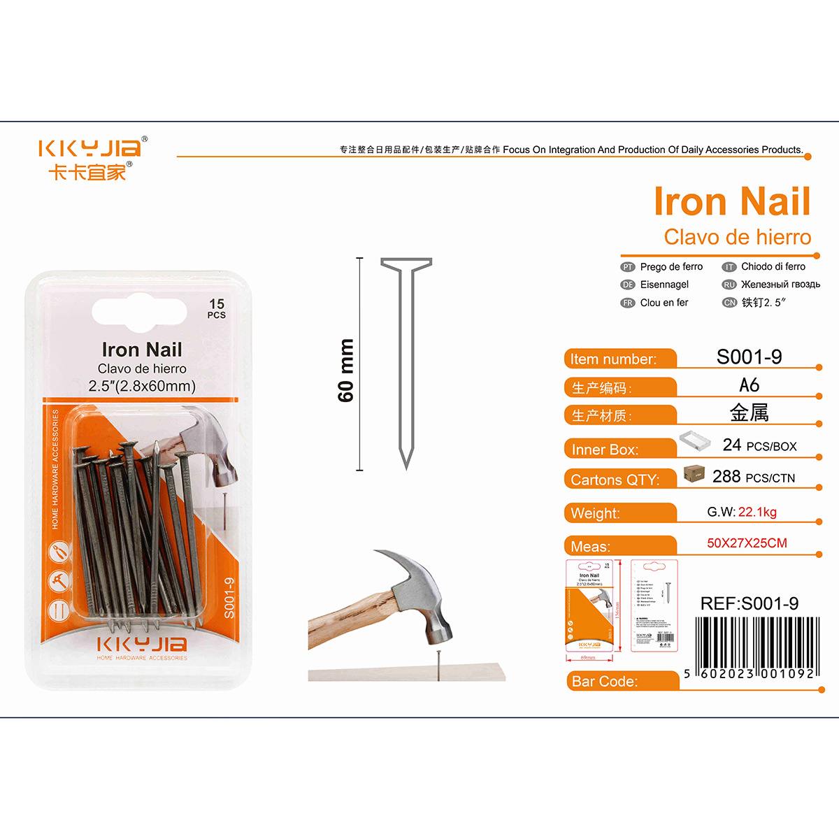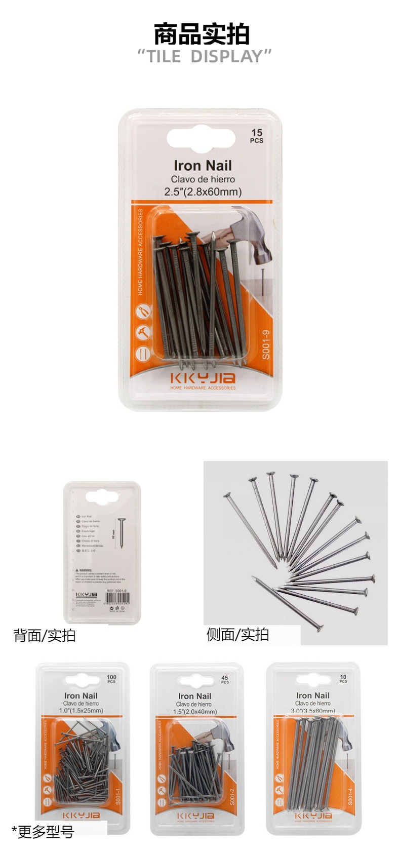 卡卡S001-9铁钉2.5寸家用lron Nail小五金系列吸塑卡装双泡工厂外