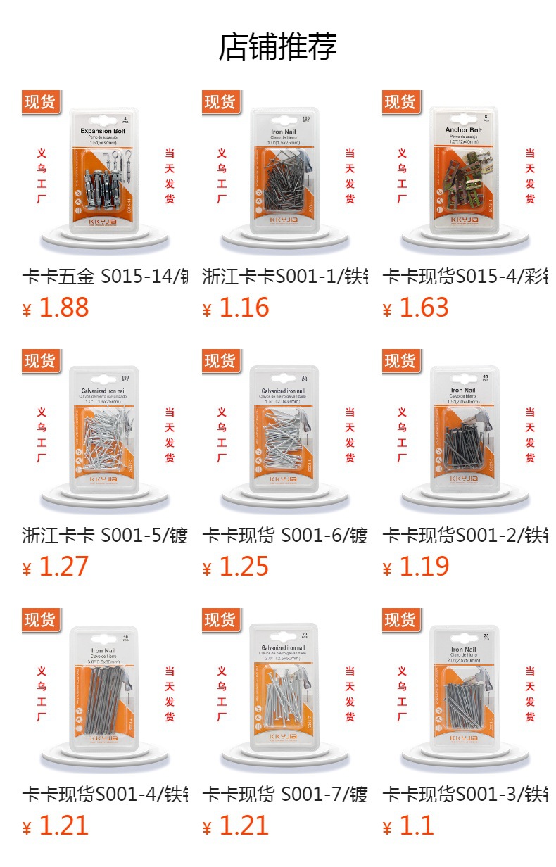 卡卡S001-9铁钉2.5寸家用lron Nail小五金系列吸塑卡装双泡工厂外 投诉