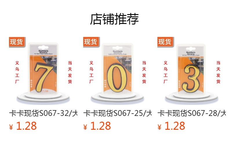 卡卡现货S067-34/大号烫金数字牌9 吸塑卡装小五金百货仓储现货供