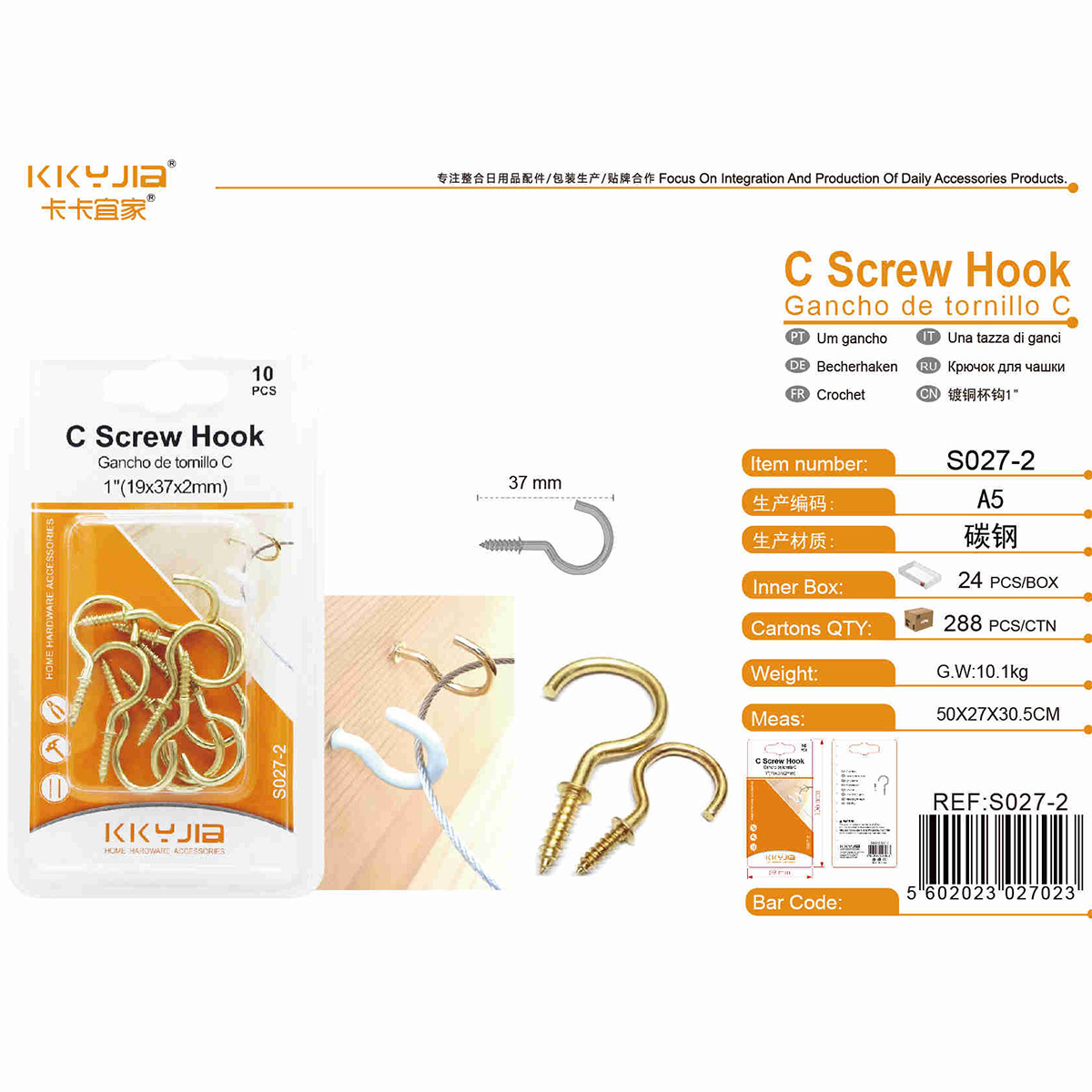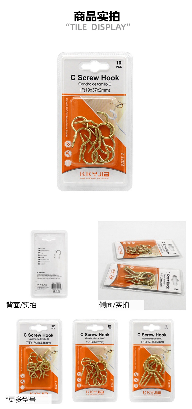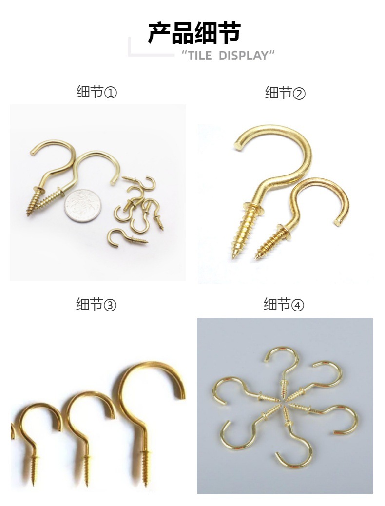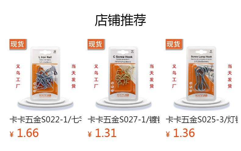 卡卡五金S027-2/镀铜杯钩1.0 ″吸塑卡装小五金百货仓储现货供应 投诉