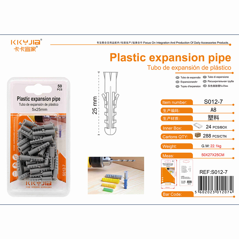 卡卡S012-7灰色膨胀管5x25mm义乌吸塑卡装小五金百货仓储现货供应