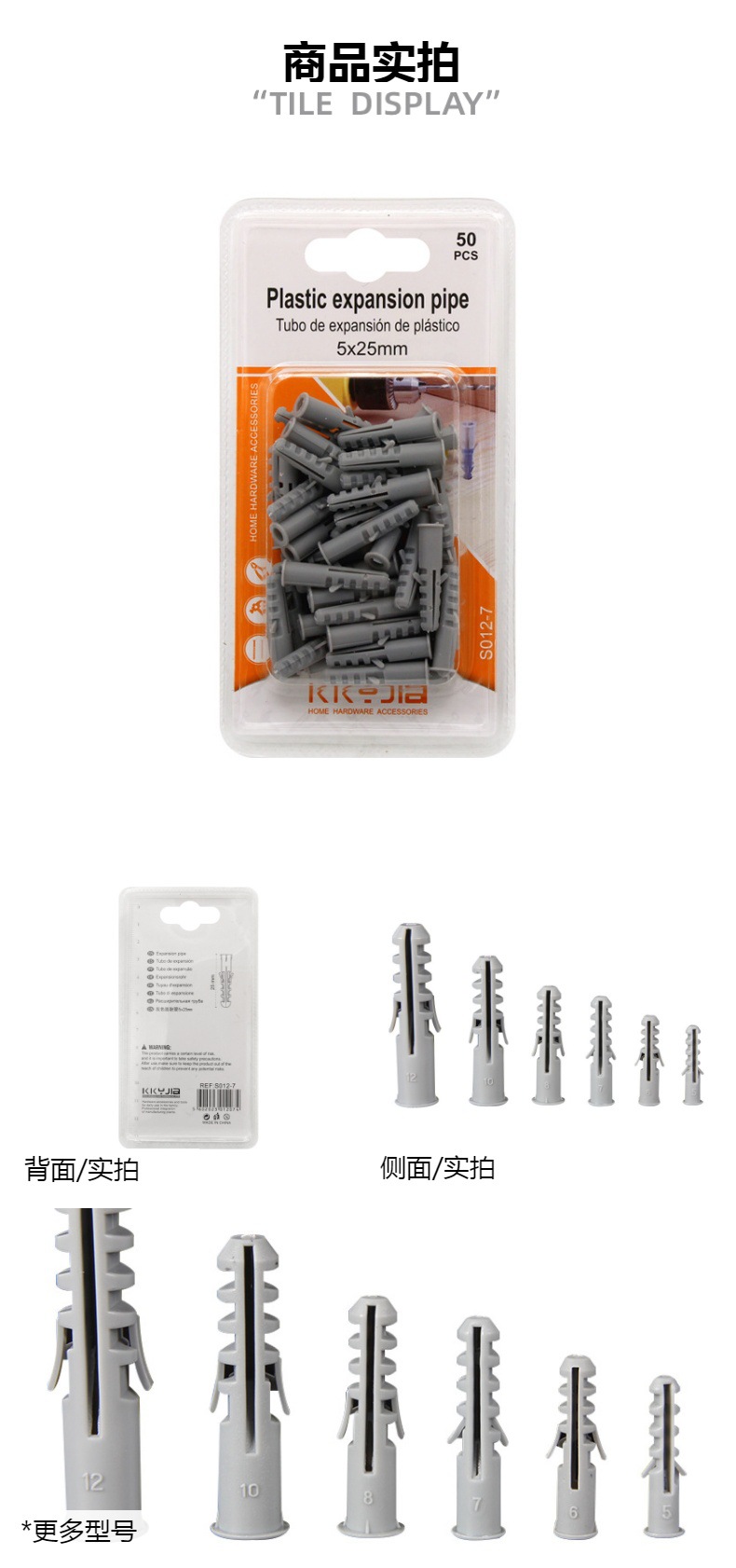 卡卡S012-7灰色膨胀管5x25mm义乌吸塑卡装小五金百货仓储现货供应 投诉