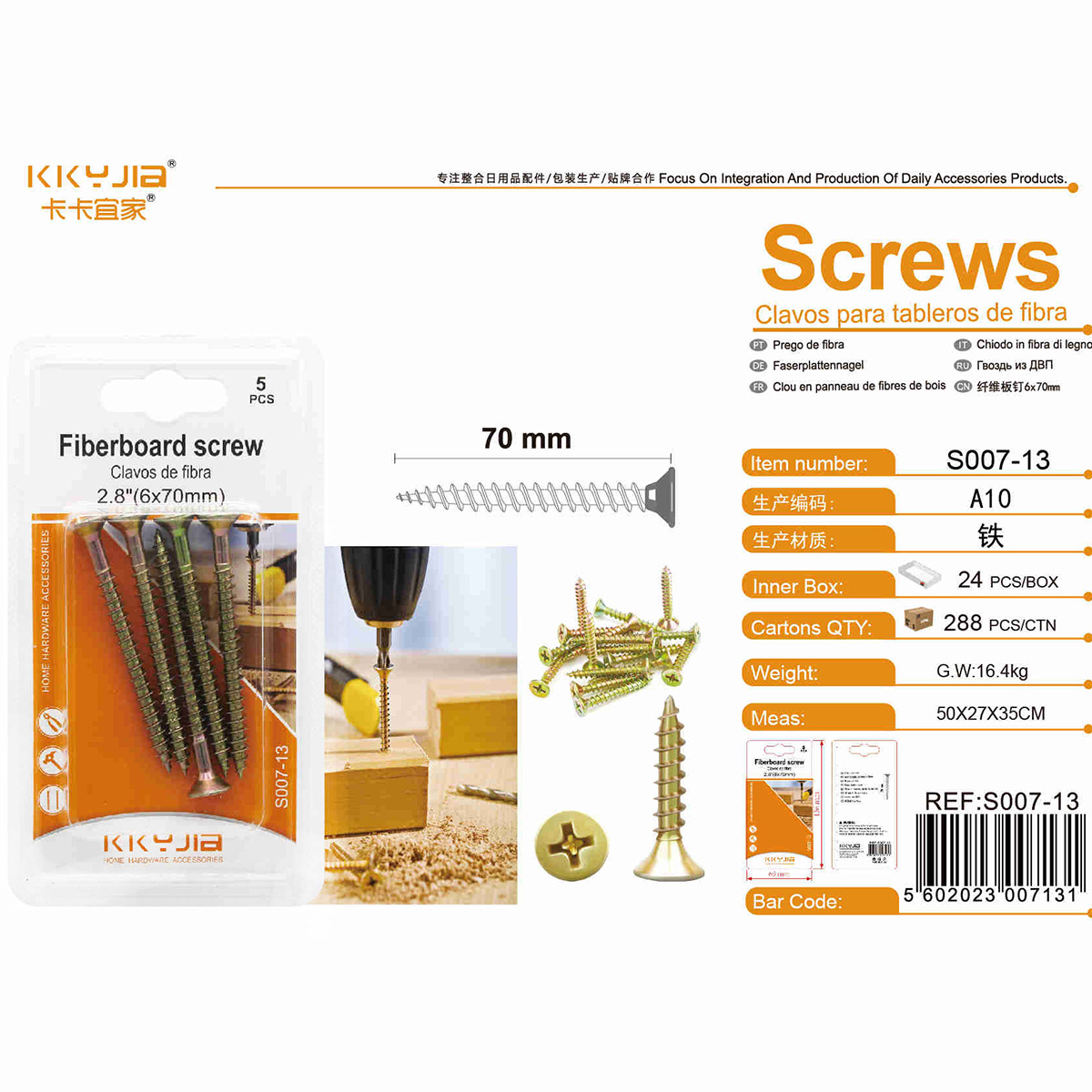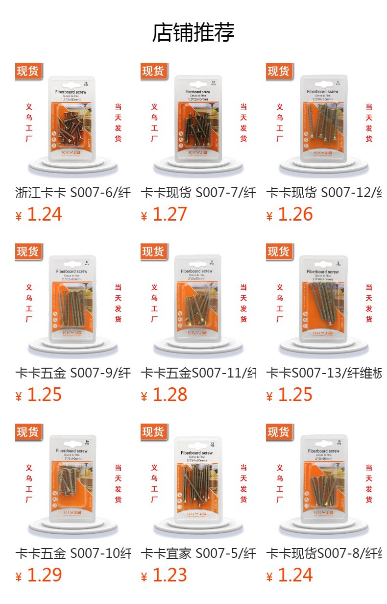 卡卡S007-13纤维板钉6x70mm义乌吸塑卡装小五金百货仓储现货供应 投诉