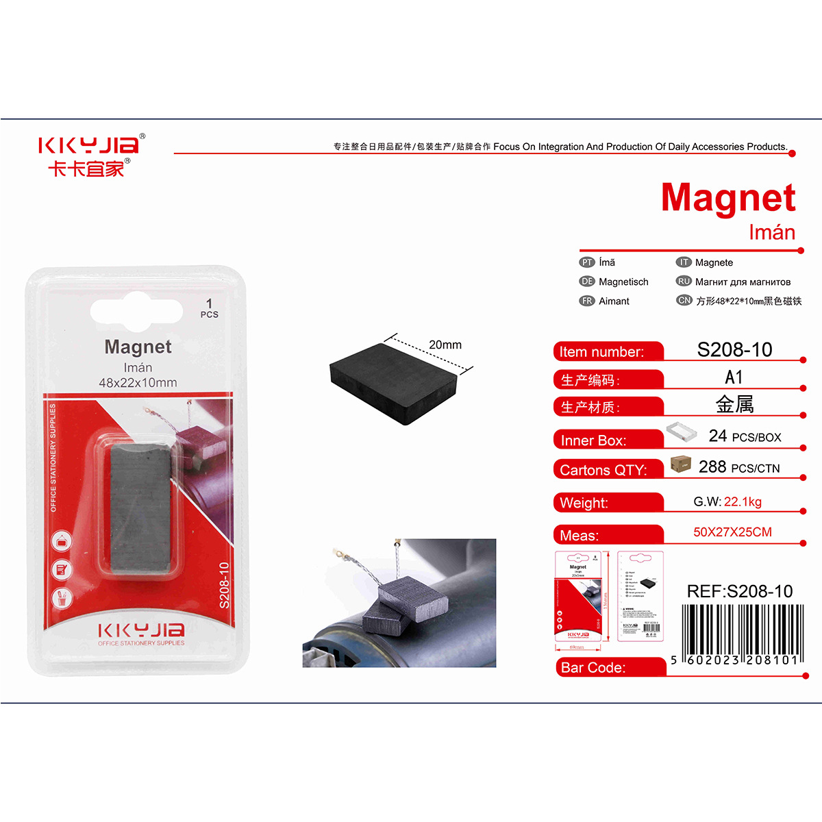 卡卡S208-10DIY方形48*22*10mm黑色磁铁卡装小五金百货仓储现货供 投诉