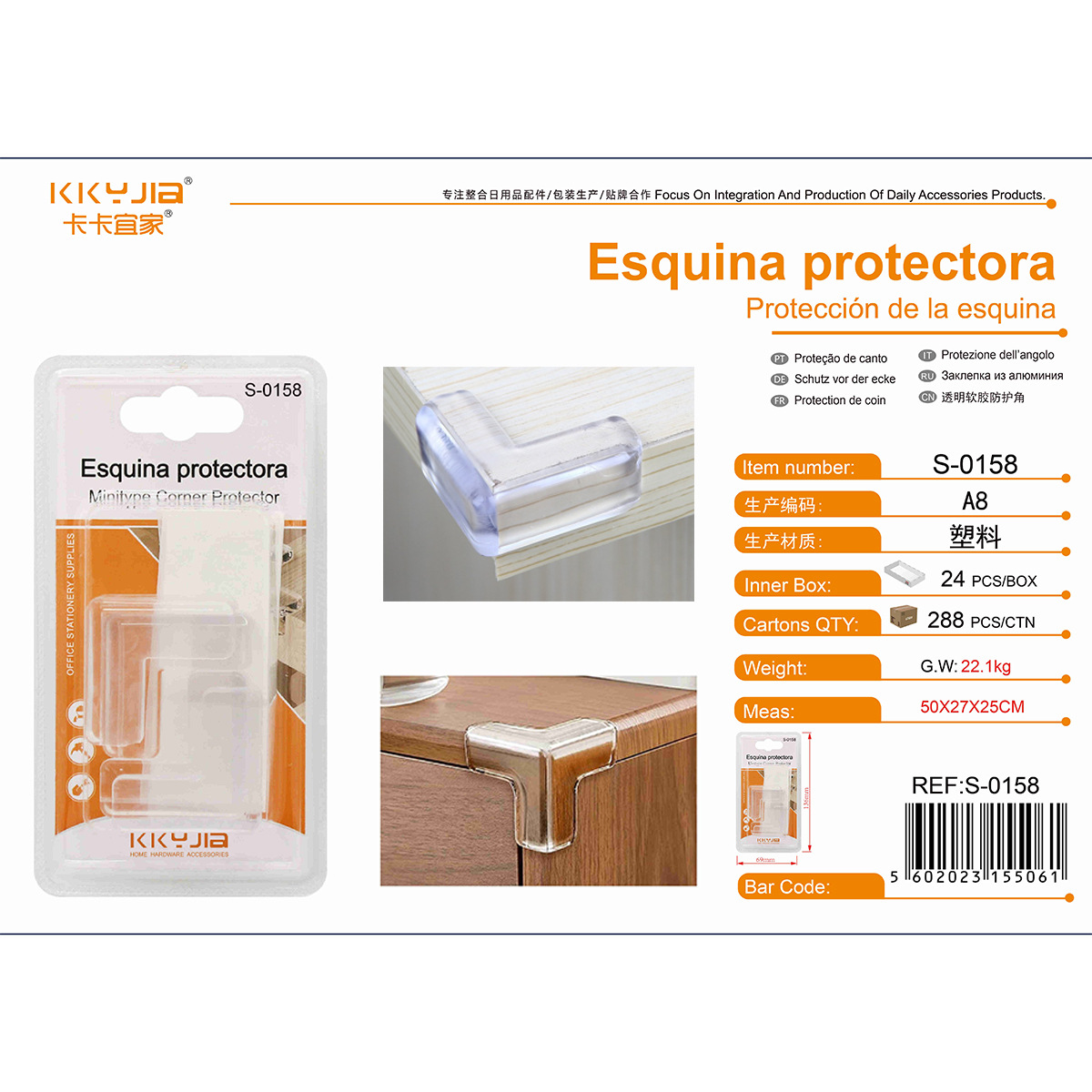 卡卡S-0158透明软胶防护角Esquina protectora小五金百货厂家仓储