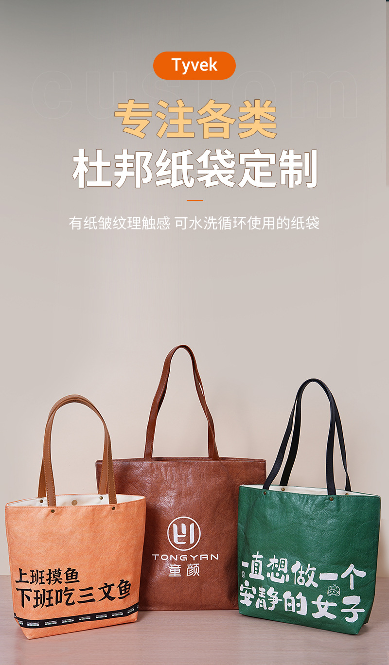 创意新潮杜邦纸袋定制logo复古防水购物帆布袋环保杜邦手提袋定做