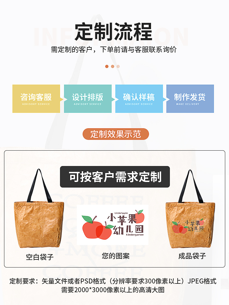 杜邦纸袋定制,需把定制需求告知客服再拍