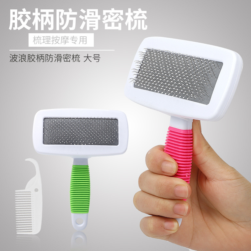 热销宠物用品糖果色狗梳子不锈钢洗澡刷脱毛跳蚤针梳皮草刷子