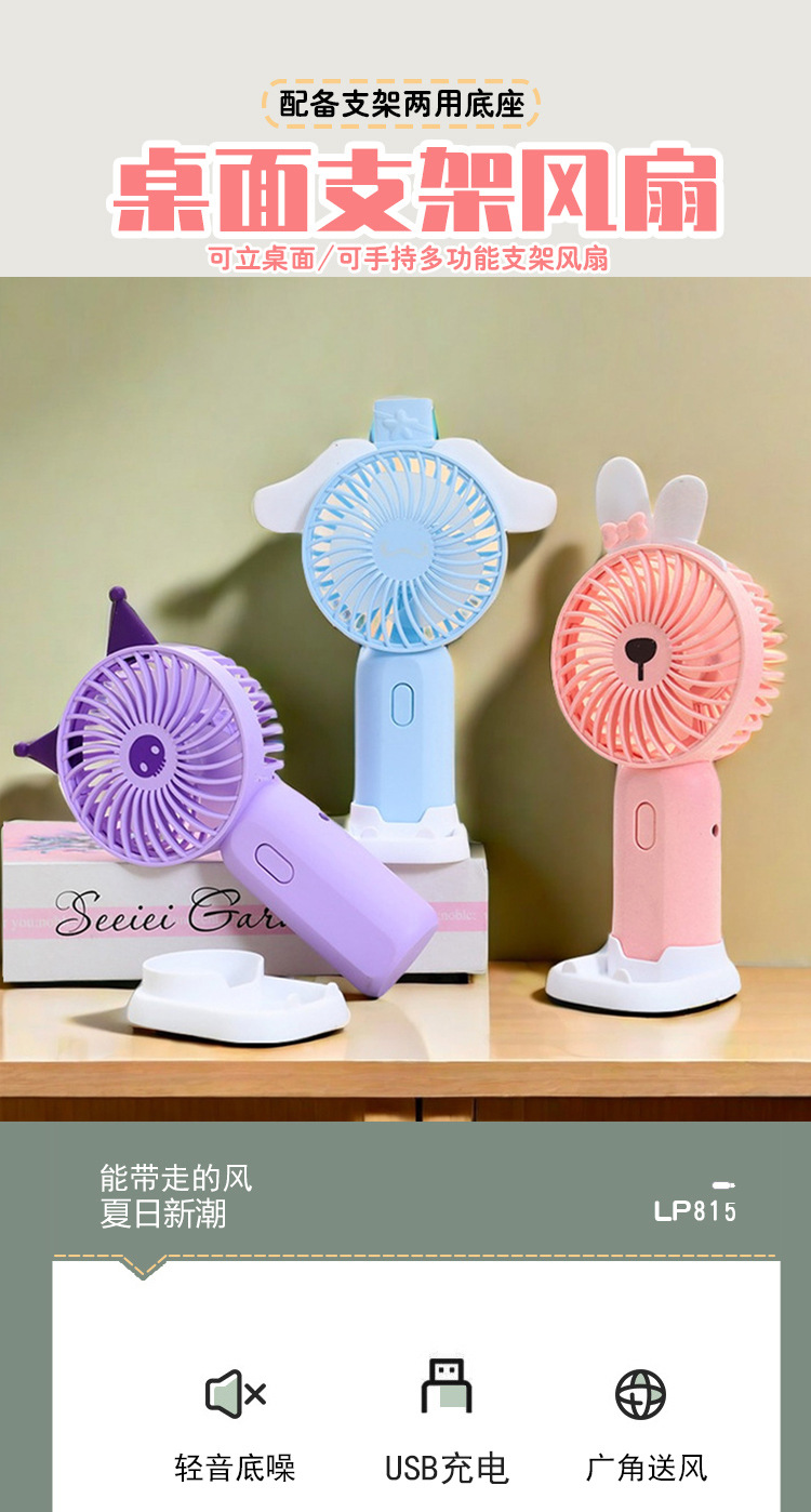 萌系卡通耳朵手持电风扇 USB充电可拆卸手机支架底座桌面小风扇 English | 投诉