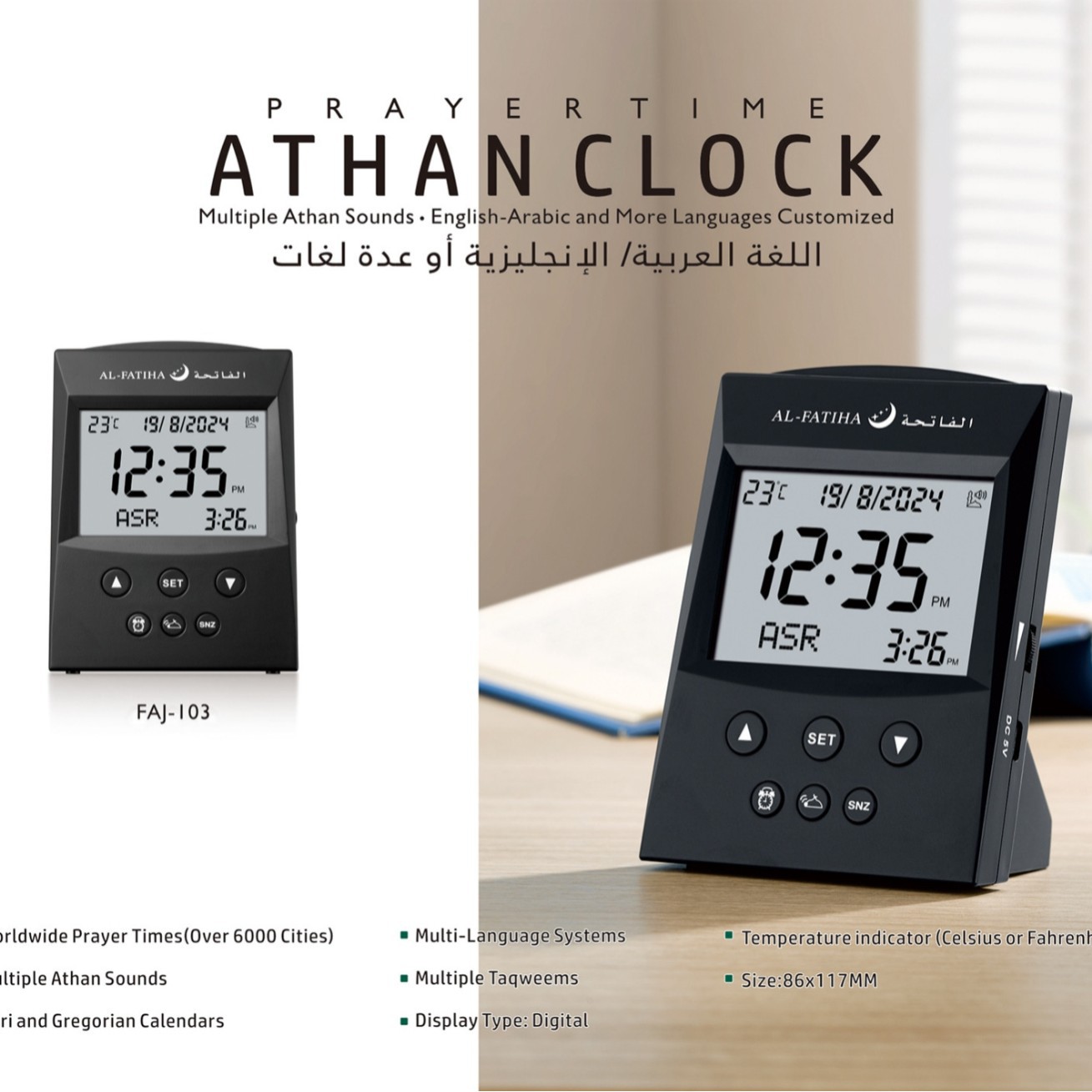 AL-FATIHA牌faj-103LCD显示桌面钟alfajr黎明晨礼时间提醒