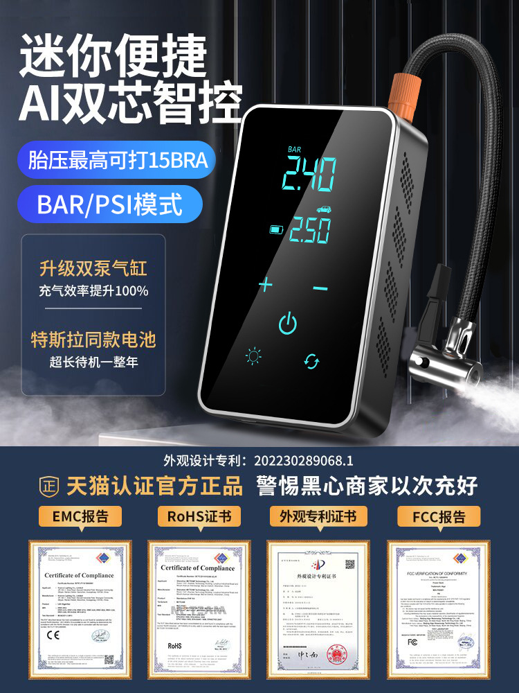 车载无线充气泵汽车用便捷式轮胎高压充气电动自行车打气筒 投诉