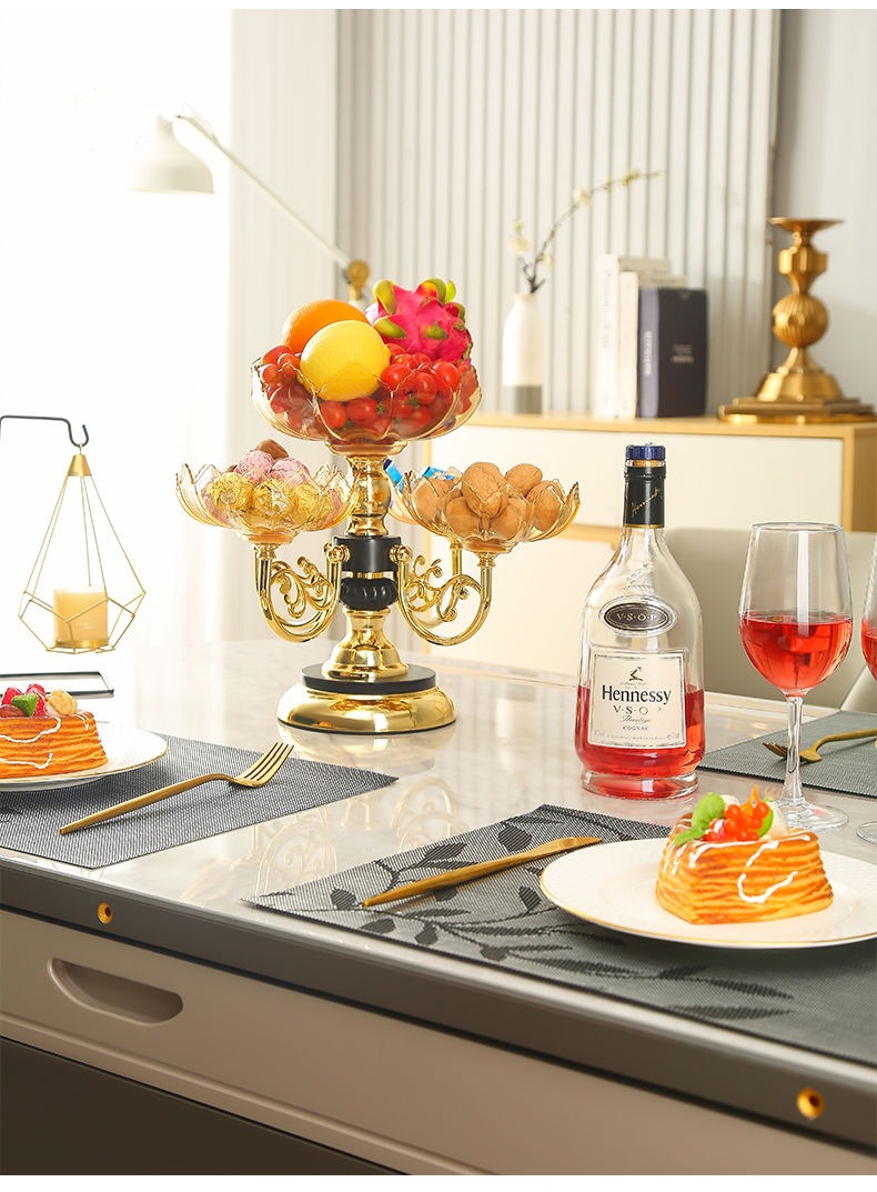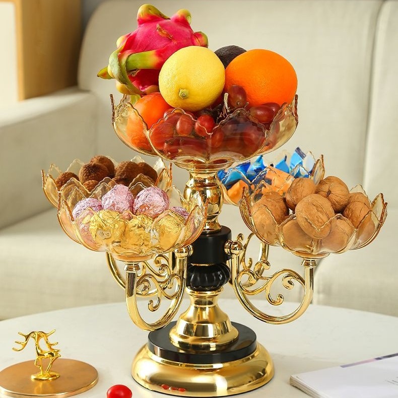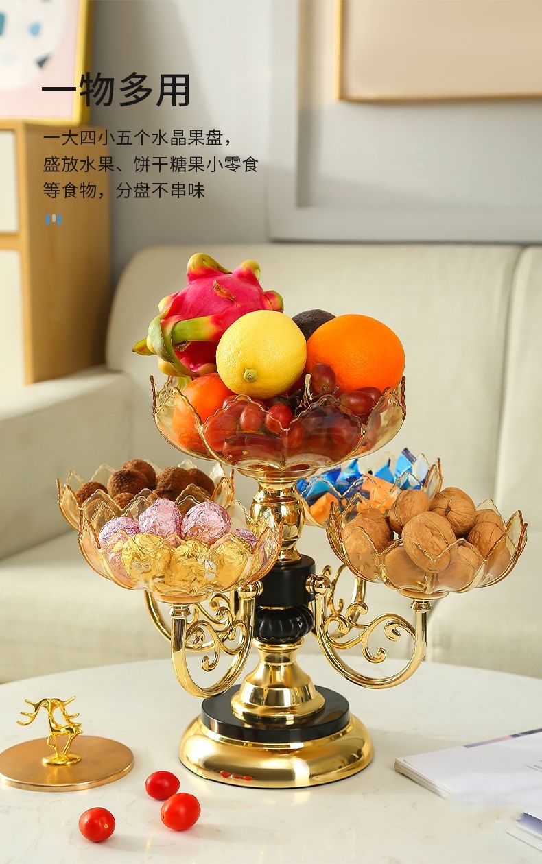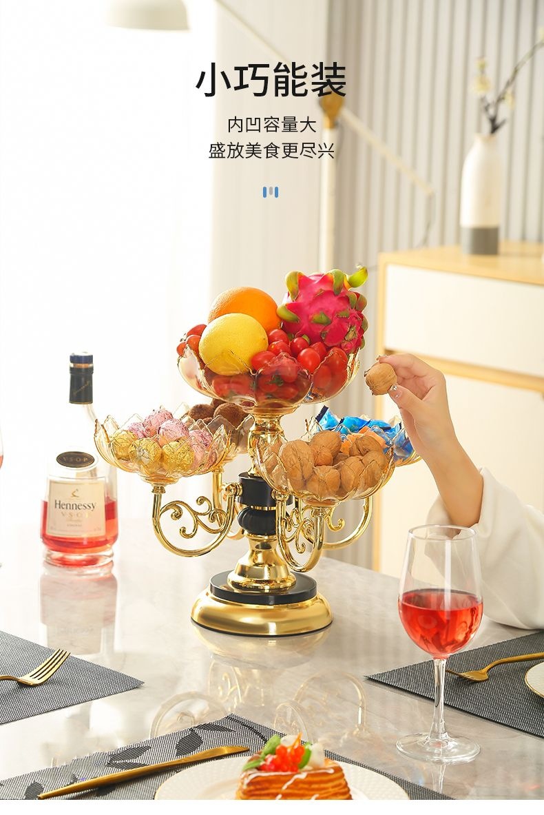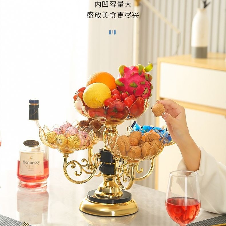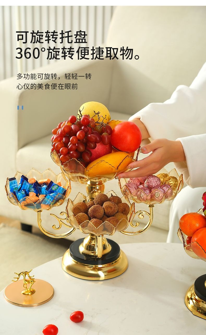 果盘家用多层旋转水果盘创意多层零食糖果盘现代家用客厅茶几轻奢