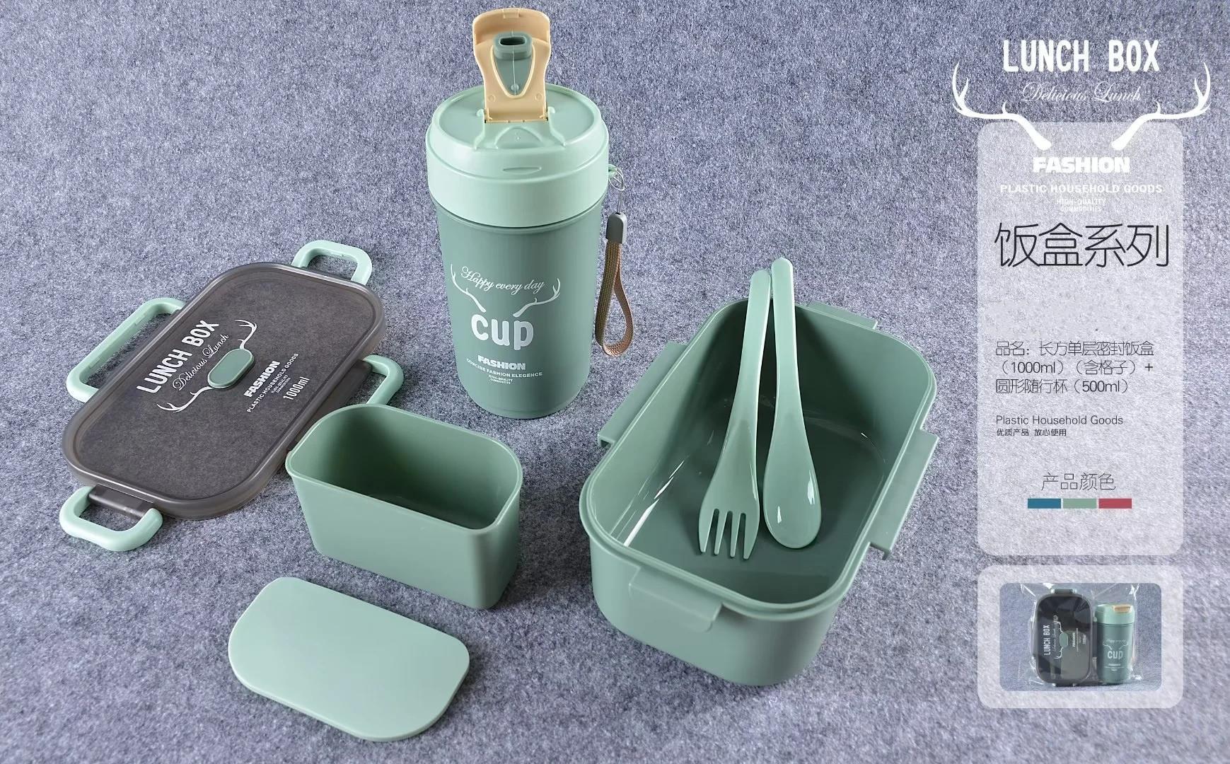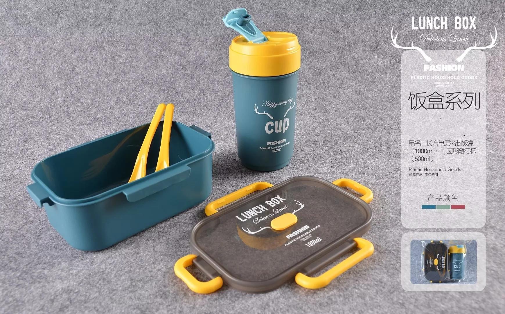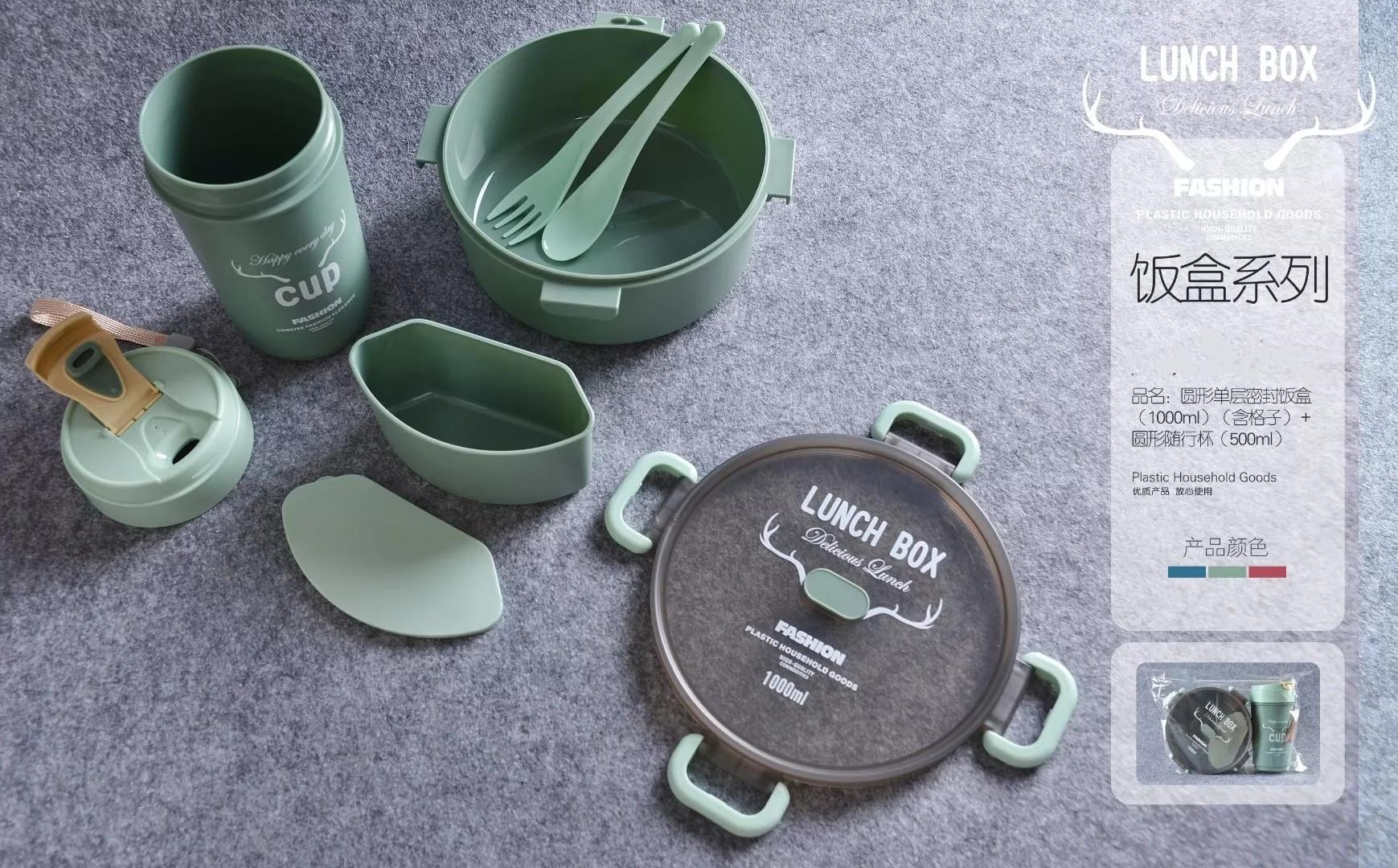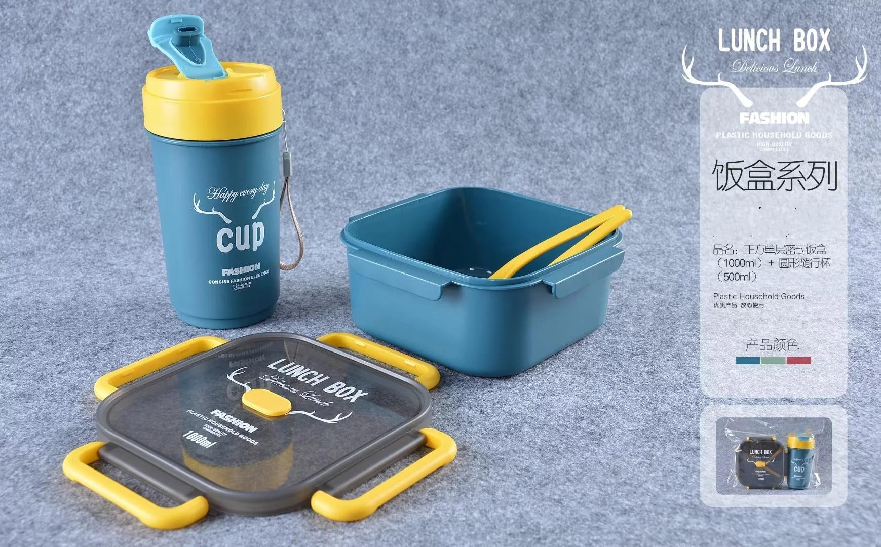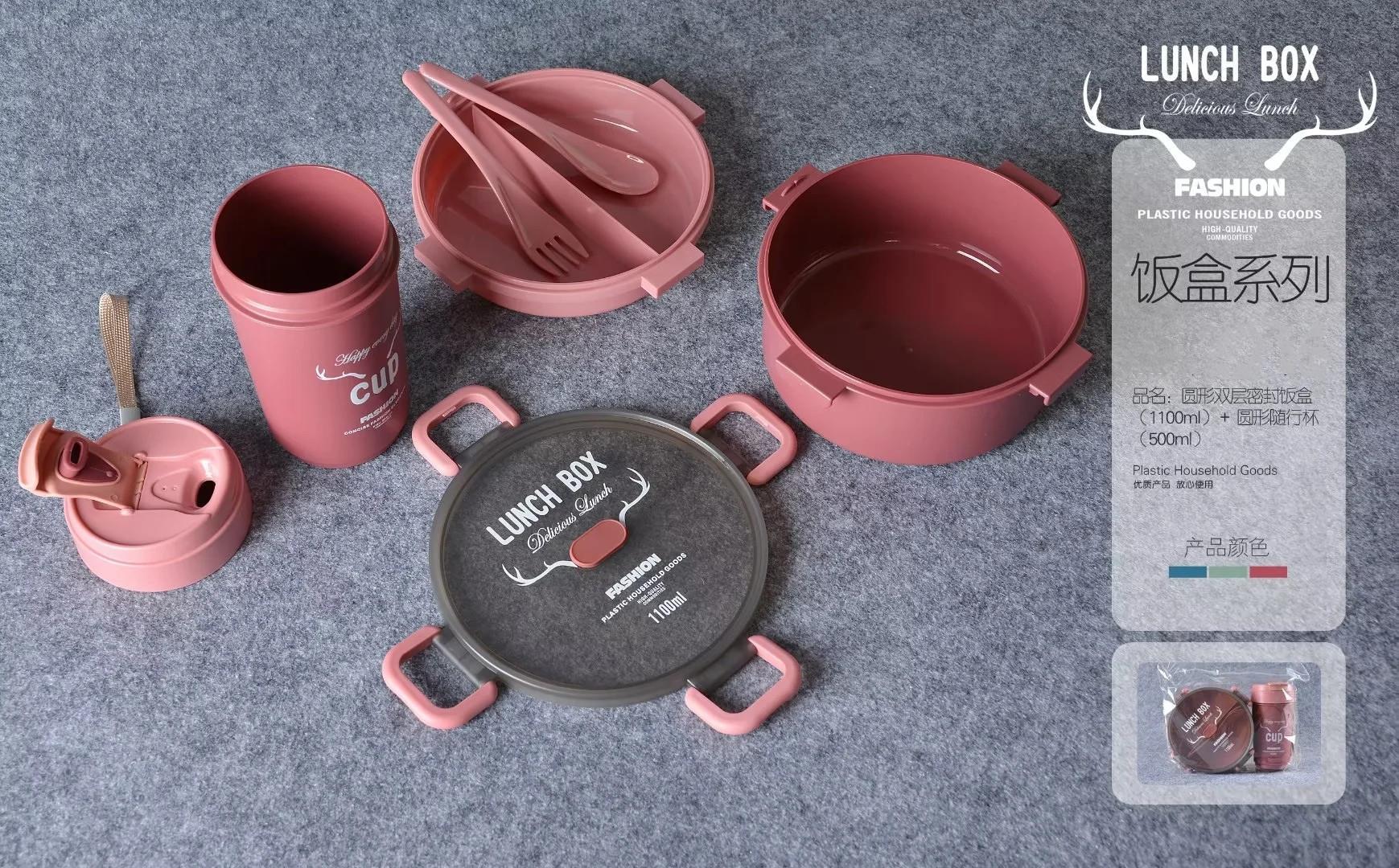 单双层方形圆形密封饭盒水杯套装微波带内格便当盒500ml圆形水杯